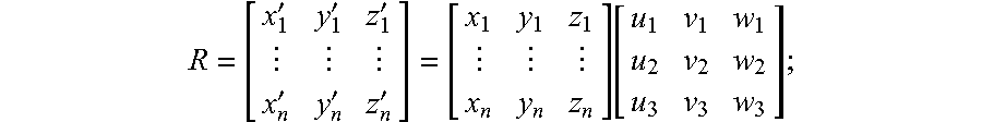R=[x1y1z1xnynzn]=[x1y1z1xnynzn][u1v1w1u2v2w2u3v3w3];