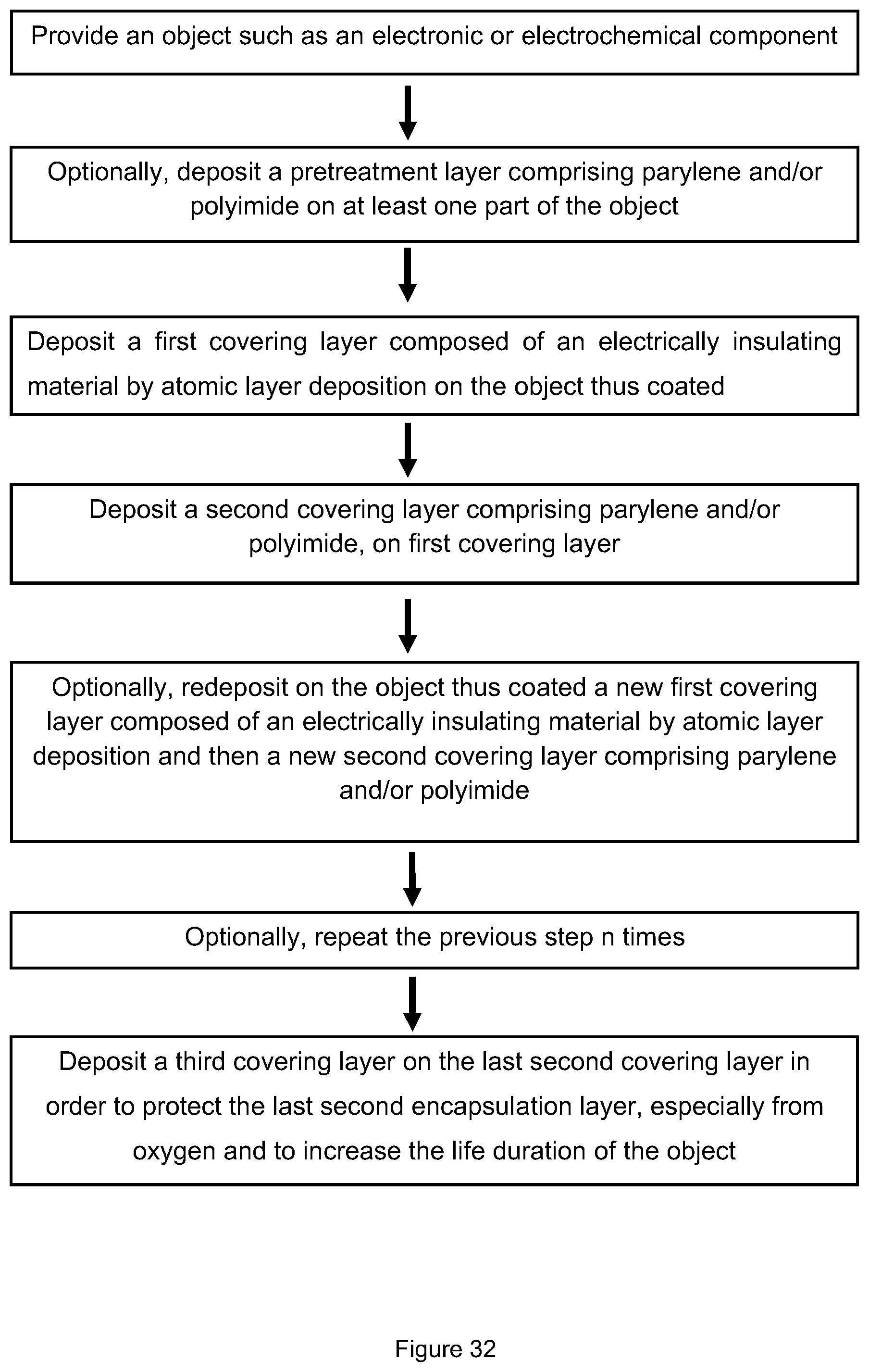 • a first covering layer of the encapsulation system 31′, identical to the first covering layer of the encapsulation system 31 and deposited on the stack by an atomic layer deposition method,