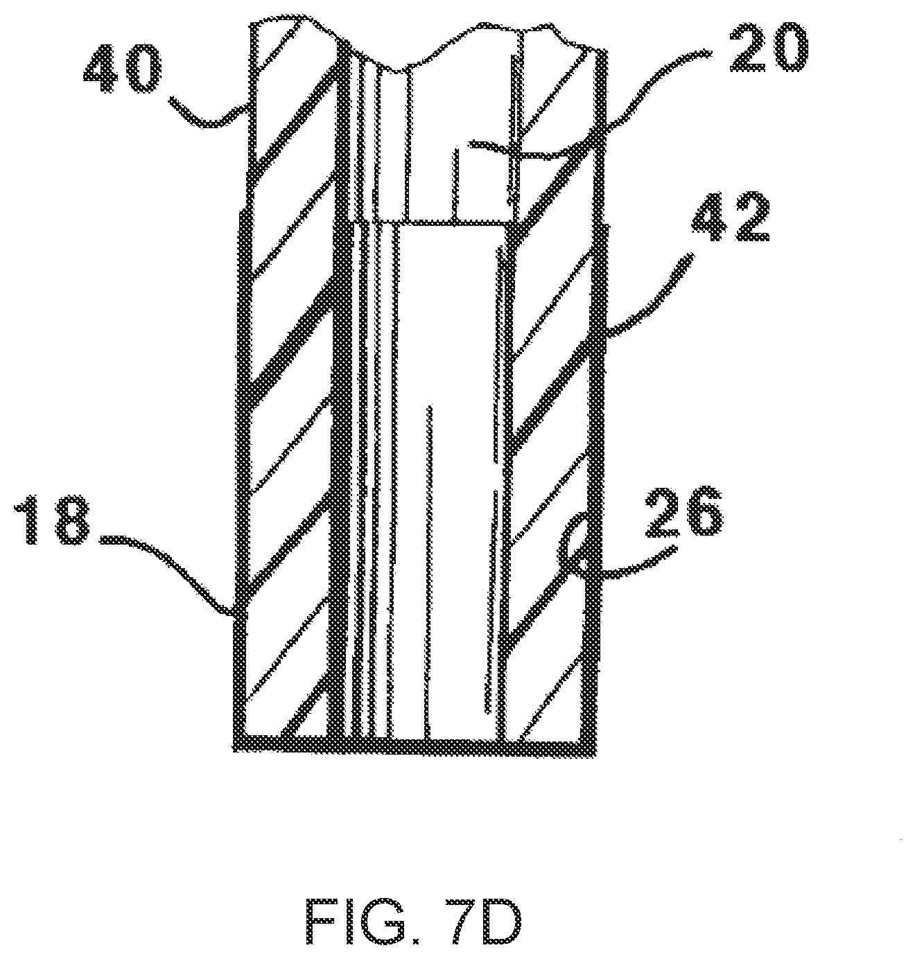 FIGS. 7A-D show an illustration of a cannula, in accordance with one or more embodiments of the invention. FIG. 7A is an enlarged, partial sectional view of a cannula inserted in a patient for directly infusing medication into the patient's tissue. FIG. 7B is an enlarged, partial longitudinal sectional view of the distal end of a drug-coated cannula. FIG. 7C is a view similar to that of FIG. 7B, but of another embodiment of the cannula according to the invention. FIG. 7D is a view similar to that of FIG. 7B, but of another embodiment of the cannula according to the invention.