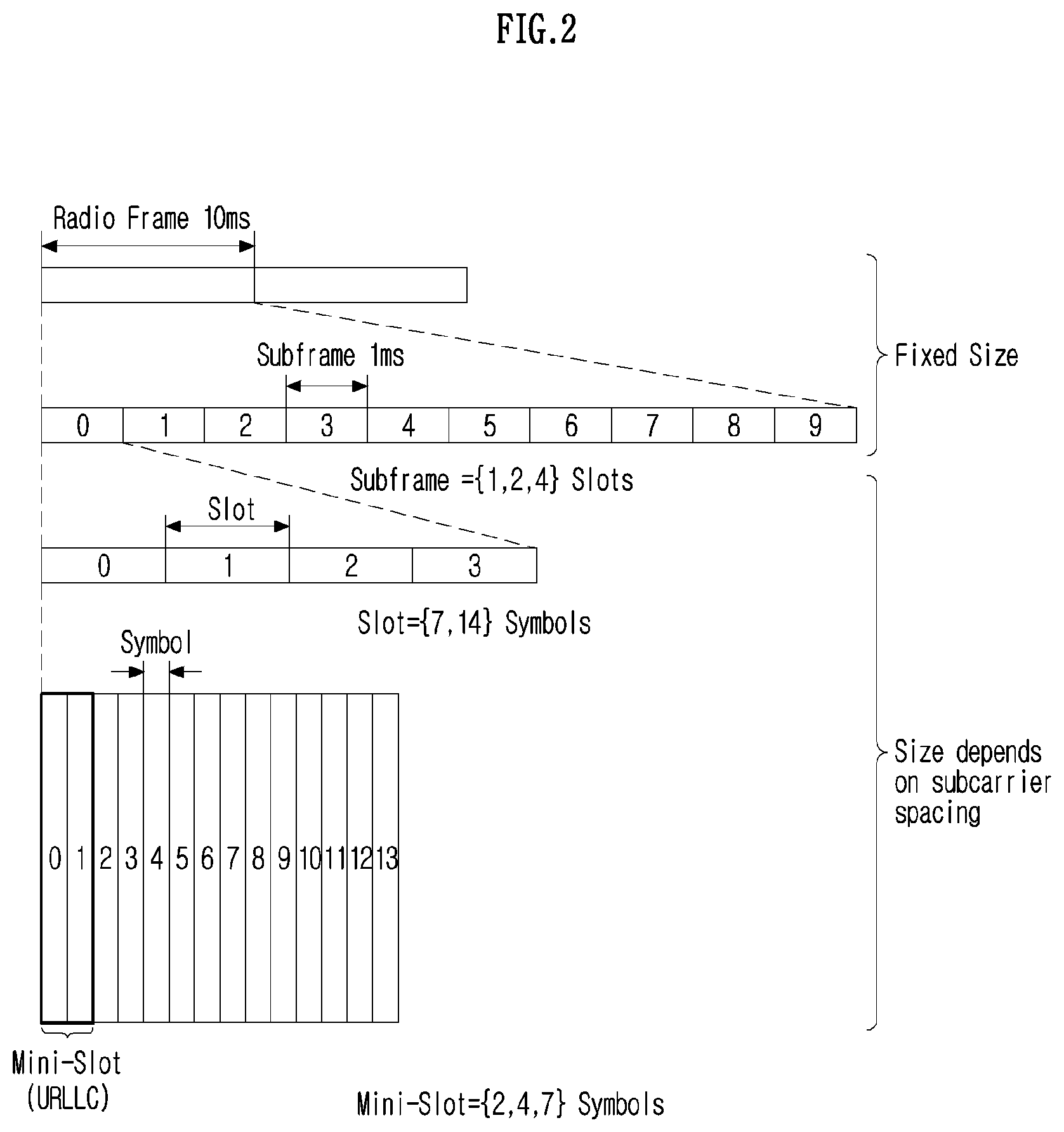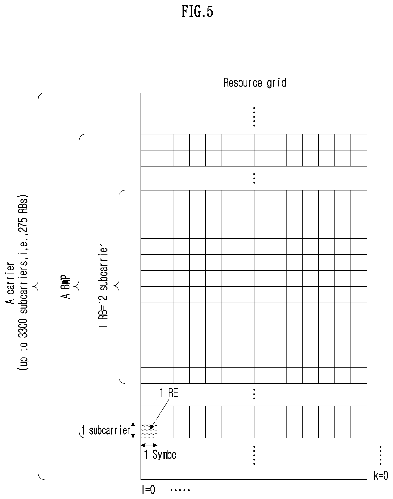 Common resource blocks are numbered from 0 to the top in a frequency domain for a subcarrier spacing configuration μ. The center of subcarrier 0 of common resource block 0 for a subcarrier spacing configuration p is identical to ‘point A’. A relationship between a common resource block number nCRBμ and a resource element (k,l) for a subcarrier spacing configuration μ in a frequency domain is given as in the following Equation 1. In Equation 1, k is defined relatively to point A so that k=0 corresponds to a subcarrier centering in point A. Physical resource blocks are numbered from 0 to NBWP,isize,μ−1 in a bandwidth part (BWP) and i is a number of a BWP. A relationship between a physical resource block nPRBand a common resource block nCRBin BWP i is given by the following Equation 2. NBWP,istart,μ is a common resource block that a BWP starts relatively to common resource block 0. In reference to A carrier includes a plurality of subcarriers in a frequency domain. An RB (Resource Block) is defined as a plurality of (e.g., 12) consecutive subcarriers in a frequency domain. A BWP(Bandwidth Part) is defined as a plurality of consecutive (physical) resource blocks in a frequency domain and may correspond to one numerology (e.g., an SCS, a CP length, etc.). A carrier may include a maximum N (e.g., 5) BWPs. A data communication may be performed through an activated BWP and only one BWP may be activated for one terminal. In a resource grid, each element is referred to as a resource element (RE) and one complex symbol may be mapped. In an NR system, up to 400 MHz may be supported per component carrier (CC). If a terminal operating in such a wideband CC always operates turning on a radio frequency (FR) chip for the whole CC, terminal battery consumption may increase. Alternatively, when several application cases operating in one wideband CC (e.g., eMBB, URLLC, Mmtc, V2X, etc.) are considered, a different numerology (e.g., a subcarrier spacing, etc.) may be supported per frequency band in a corresponding CC. Alternatively, each terminal may have a different capability for the maximum bandwidth. By considering it, a base station may indicate a terminal to operate only in a partial bandwidth, not in a full bandwidth of a wideband CC, and a corresponding partial bandwidth is defined as a bandwidth part (BWP) for convenience. A BWP may be configured with consecutive RBs on a frequency axis and may correspond to one numerology (e.g., a subcarrier spacing, a CP length, a slot/a mini-slot duration). Meanwhile, a base station may configure a plurality of BWPs even in one CC configured to a terminal. For example, a BWP occupying a relatively small frequency domain may be configured in a PDCCH monitoring slot, and a PDSCH indicated by a PDCCH may be scheduled in a greater BWP. Alternatively, when UEs are congested in a specific BWP, some terminals may be configured with other BWP for load balancing. Alternatively, considering frequency domain inter-cell interference cancellation between neighboring cells, etc., some middle spectrums of a full bandwidth may be excluded and BWPs on both edges may be configured in the same slot. In other words, a base station may configure at least one DL/UL BWP to a terminal associated with a wideband CC. A base station may activate at least one DL/UL BWP of configured DL/UL BWP(s) at a specific time (by L1 signaling or MAC CE(Control Element) or RRC signaling, etc.). In addition, a base station may indicate switching to other configured DL/UL BWP (by L1 signaling or MAC CE or RRC signaling, etc.). Alternatively, based on a timer, when a timer value is expired, it may be switched to a determined DL/UL BWP. Here, an activated DL/UL BWP is defined as an active DL/UL BWP. But, a configuration on a DL/UL BWP may not be received when a terminal performs an initial access procedure or before a RRC connection is set up, so a DL/UL BWP which is assumed by a terminal under these situations is defined as an initial active DL/UL BWP. In a wireless communication system, a terminal receives information through a downlink from a base station and transmits information through an uplink to a base station. Information transmitted and received by a base station and a terminal includes data and a variety of control information and a variety of physical channels exist according to a type/a usage of information transmitted and received by them. When a terminal is turned on or newly enters a cell, it performs an initial cell search including synchronization with a base station or the like (S601). For the initial cell search, a terminal may synchronize with a base station by receiving a primary synchronization signal (PSS) and a secondary synchronization signal (SSS) from a base station and obtain information such as a cell identifier (ID), etc. After that, a terminal may obtain broadcasting information in a cell by receiving a physical broadcast channel (PBCH) from a base station. Meanwhile, a terminal may check out a downlink channel state by receiving a downlink reference signal (DL RS) at an initial cell search stage. A terminal which completed an initial cell search may obtain more detailed system information by receiving a physical downlink control channel (PDCCH) and a physical downlink shared channel (PDSCH) according to information carried in the PDCCH (S602). Meanwhile, when a terminal accesses to a base station for the first time or does not have a radio resource for signal transmission, it may perform a random access (RACH) procedure to a base station (S603 to S606). For the random access procedure, a terminal may transmit a specific sequence as a preamble through a physical random access channel (PRACH) (S603 and S605) and may receive a response message for a preamble through a PDCCH and a corresponding PDSCH (S604 and S606). A contention based RACH may additionally perform a contention resolution procedure. A terminal which performed the above-described procedure subsequently