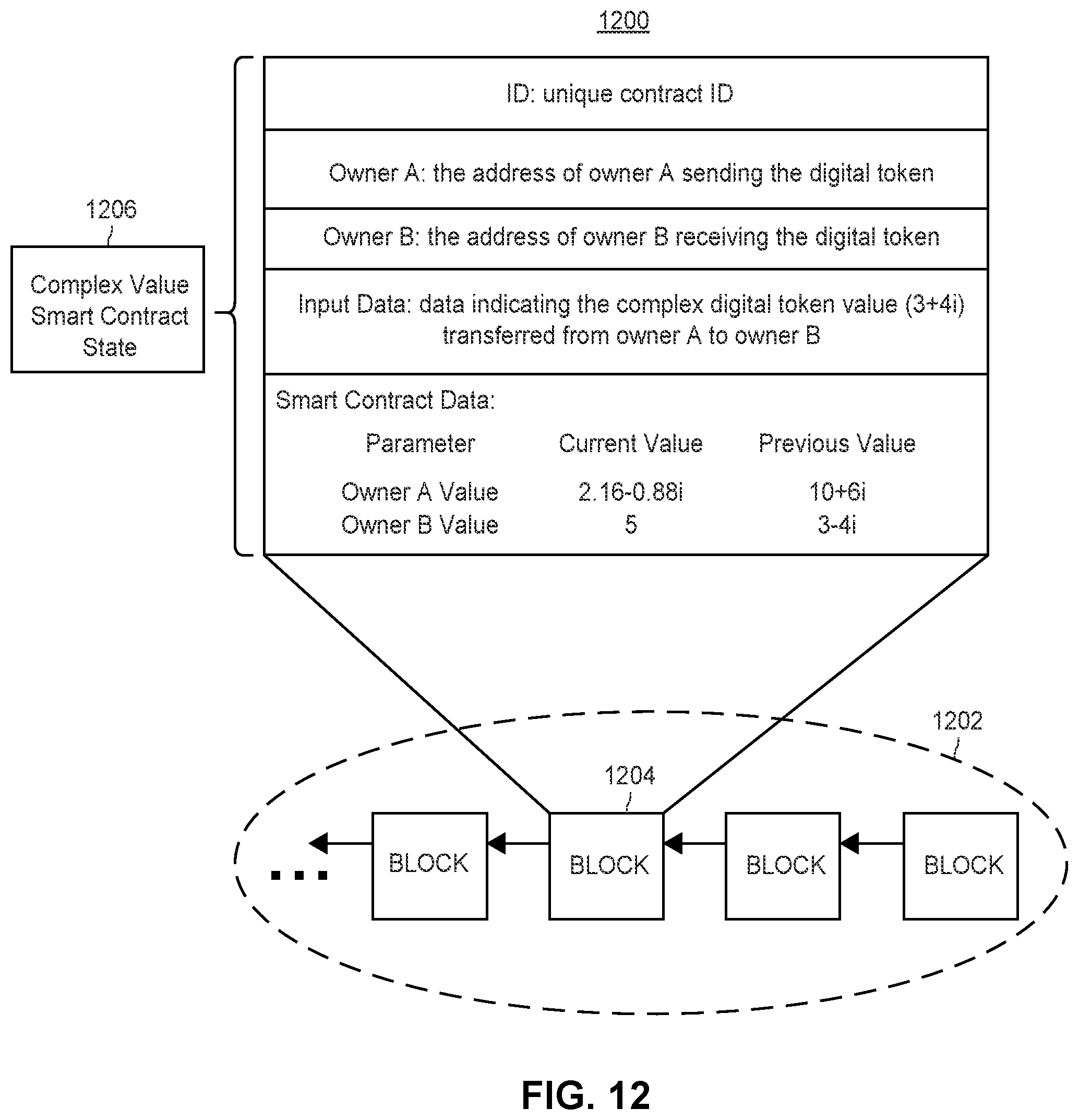 receive requests to receive and transmit digital token values, wherein the digital token values are complex number values having at least two components; identify parties requesting to transmit and receive a same digital token value; and exchange the same digital token value between the identified parties; and deploying, by the one or more processors, the smart contract to an address stored on the distributed ledger maintained by the plurality of participants in a distributed ledger network. 18. The method of 19. The method of 20. The method of