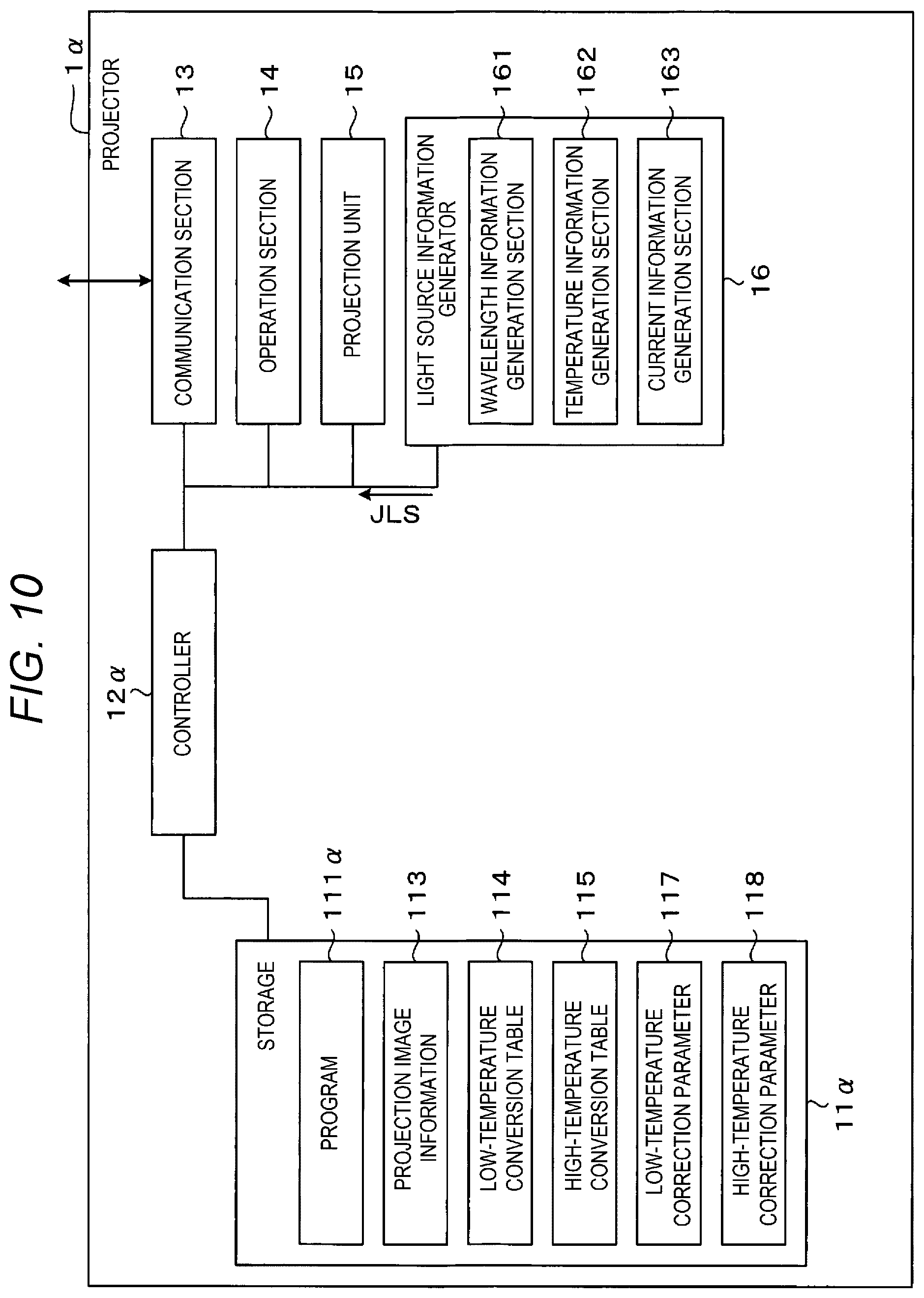 generate a correction parameter based on a state of the light source, and correct a projection image based on the correction parameter; and a lens group that projects an image corrected based on the correction parameter. 15. An information processing apparatus comprising