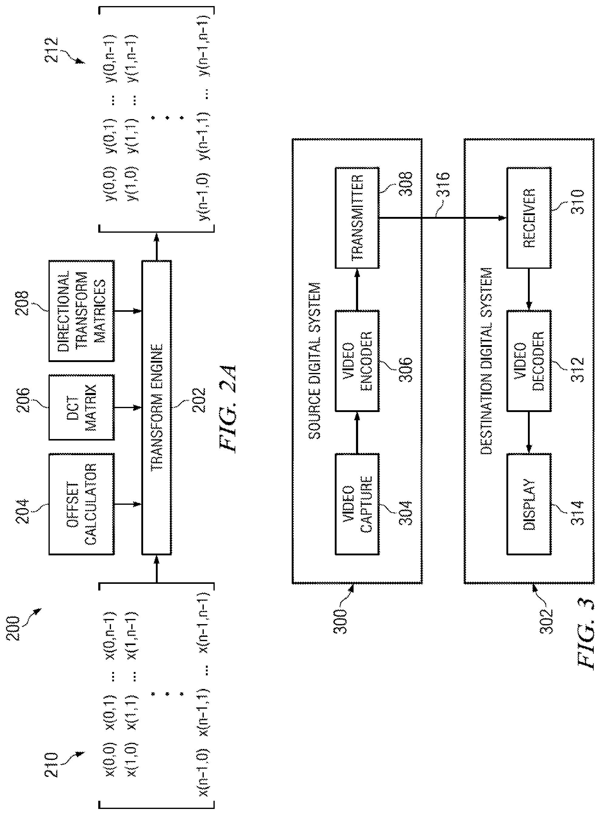 // D′*Input for(i=0;i<uiSize;i++) { for(j=0;j<uiSize;j++) { sum = 0; for(k=0;k<uiSize;k++) sum += DCTMatrix[k*uiDctOffset][i] * pSrc[k][j]; TransposeBuffer[i][j] = sum; }} // (D′*Input)*D for(i=0;i<uiSize;i++) { for(j=0;j<uiSize;j++) { sum = 0; for(k=0;k<uiSize;k++) sum += TransposeBuffer[i][k] * DCTMatrix[k*uiDctOffset][j]; pDst[i][j] = sum; }}} OTHER EMBODIMENTS