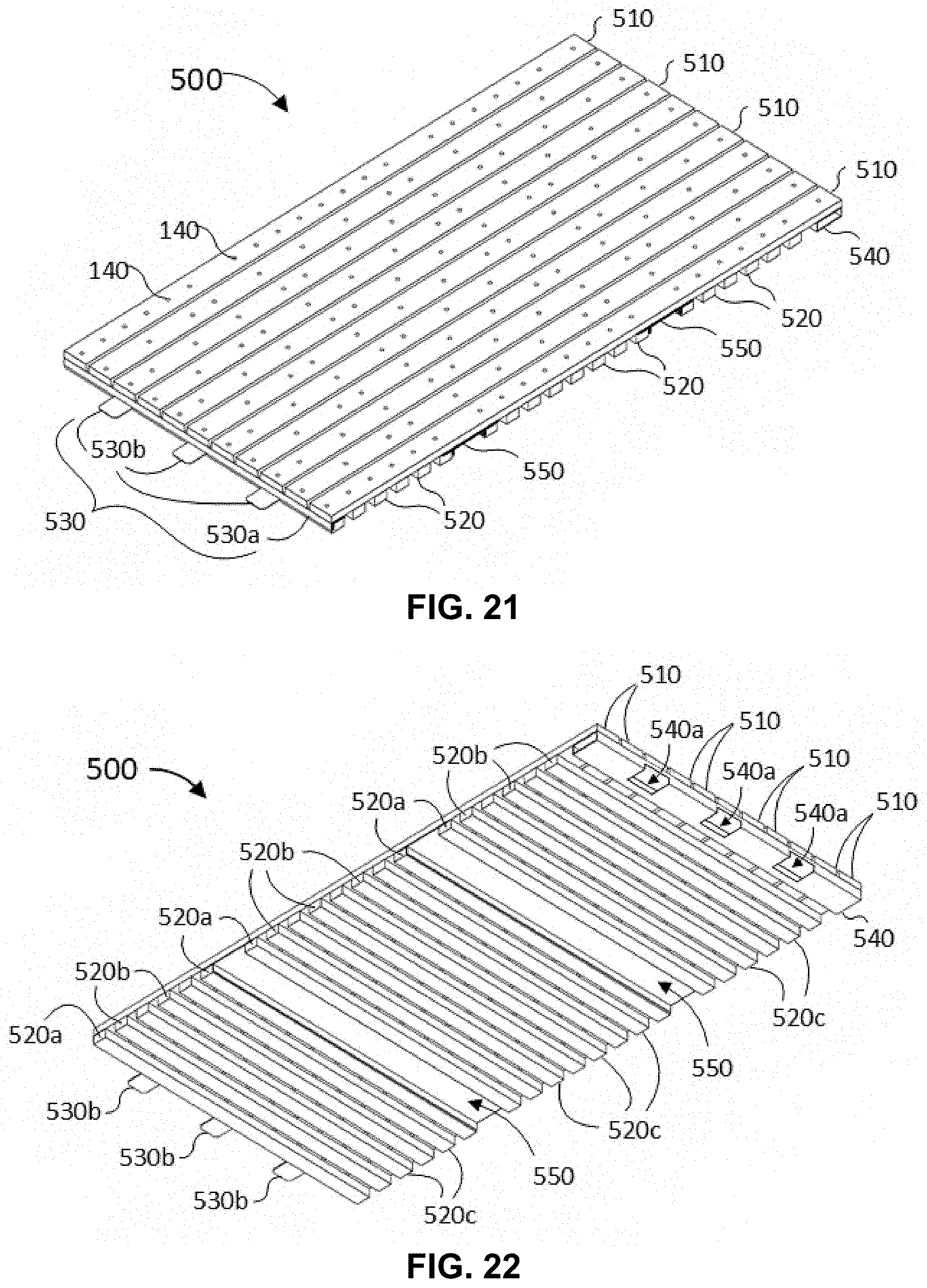 top layer having a plurality of equidistantly spaced-apart elongate laminated composite bamboo boards arranged in parallel; a bottom layer having