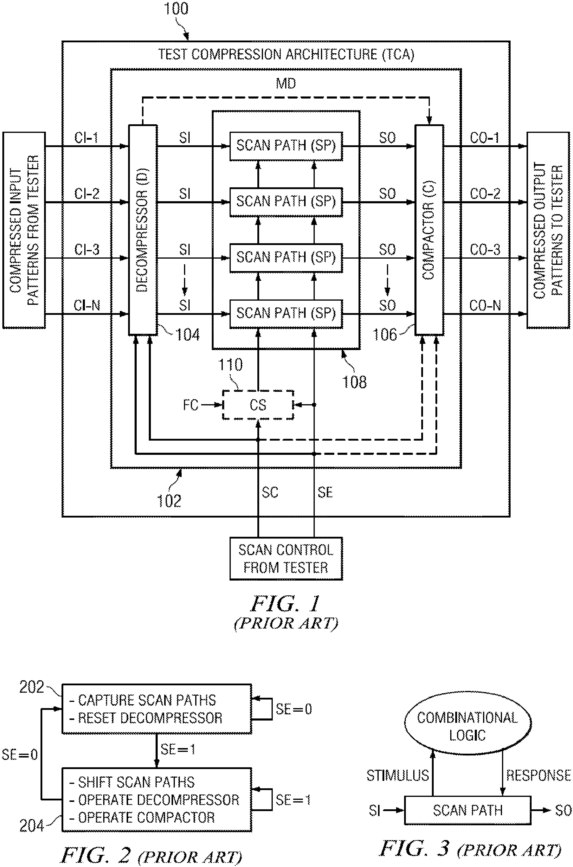 [0013]This disclosure relates generally to test compression architectures in electrical devices and in particular to accessing test compression architectures using either a parallel or serial interface.