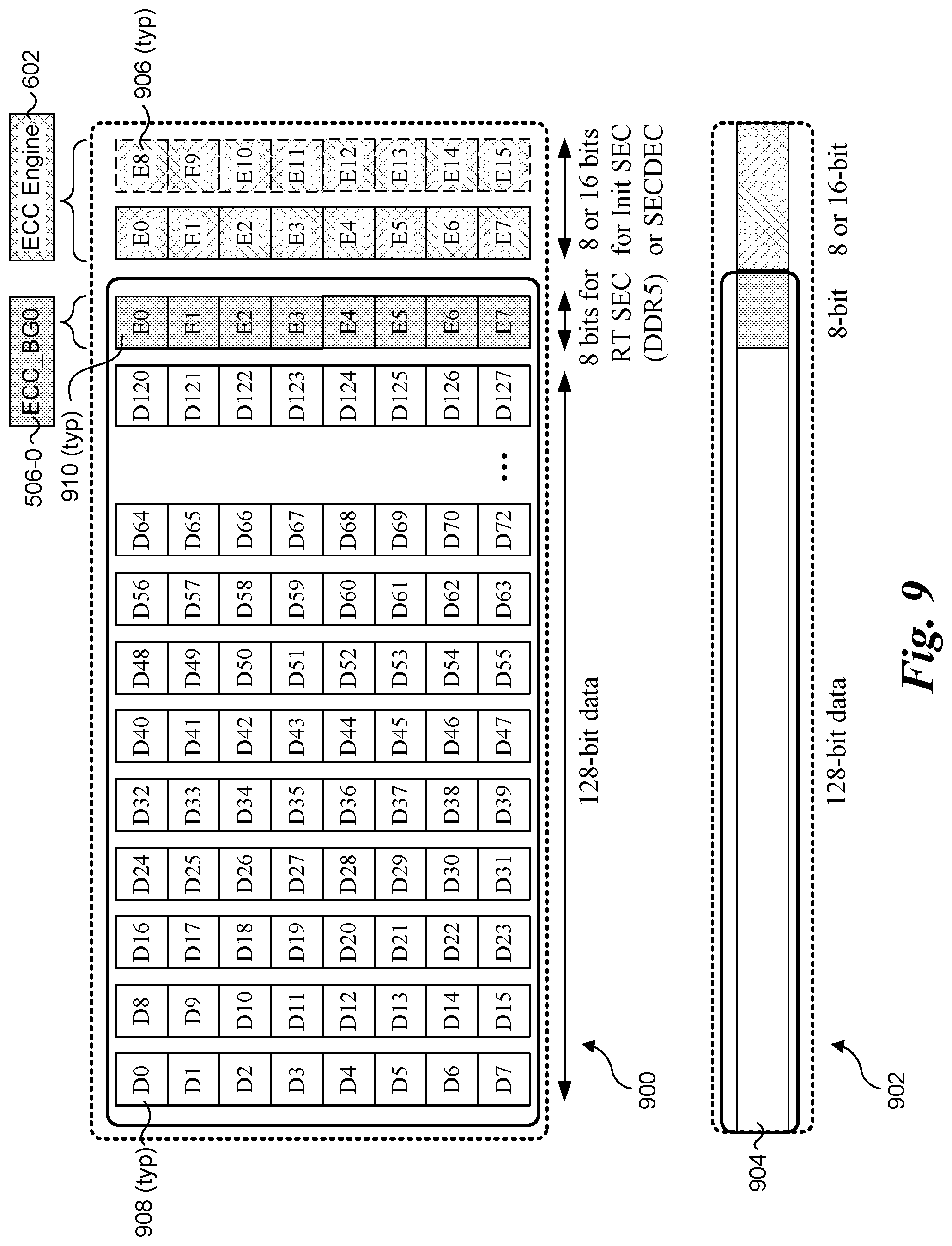 a plurality of bank groups, each bank group comprising multiple memory banks, each memory bank including an array of memory cells arranged in rows and columns; memory channel input/output (I/O) circuitry for one or more memory channels, and an error correction code (ECC) engine, wherein the DRAM device is configured to operate in a first mode in which the ECC engine employs selected bits in the arrays of memory cells as ECC bits to perform ECC operations and to operate in a second mode under which the ECC bits are not employed for ECC operations by the ECC engine and made available for external use. 2. The DRAM device of 3. The DRAM device of 4. The DRAM device of 5. The DRAM device of 6. The DRAM device of 7. The DRAM device of 8. The DRAM device of 9. A system comprising: