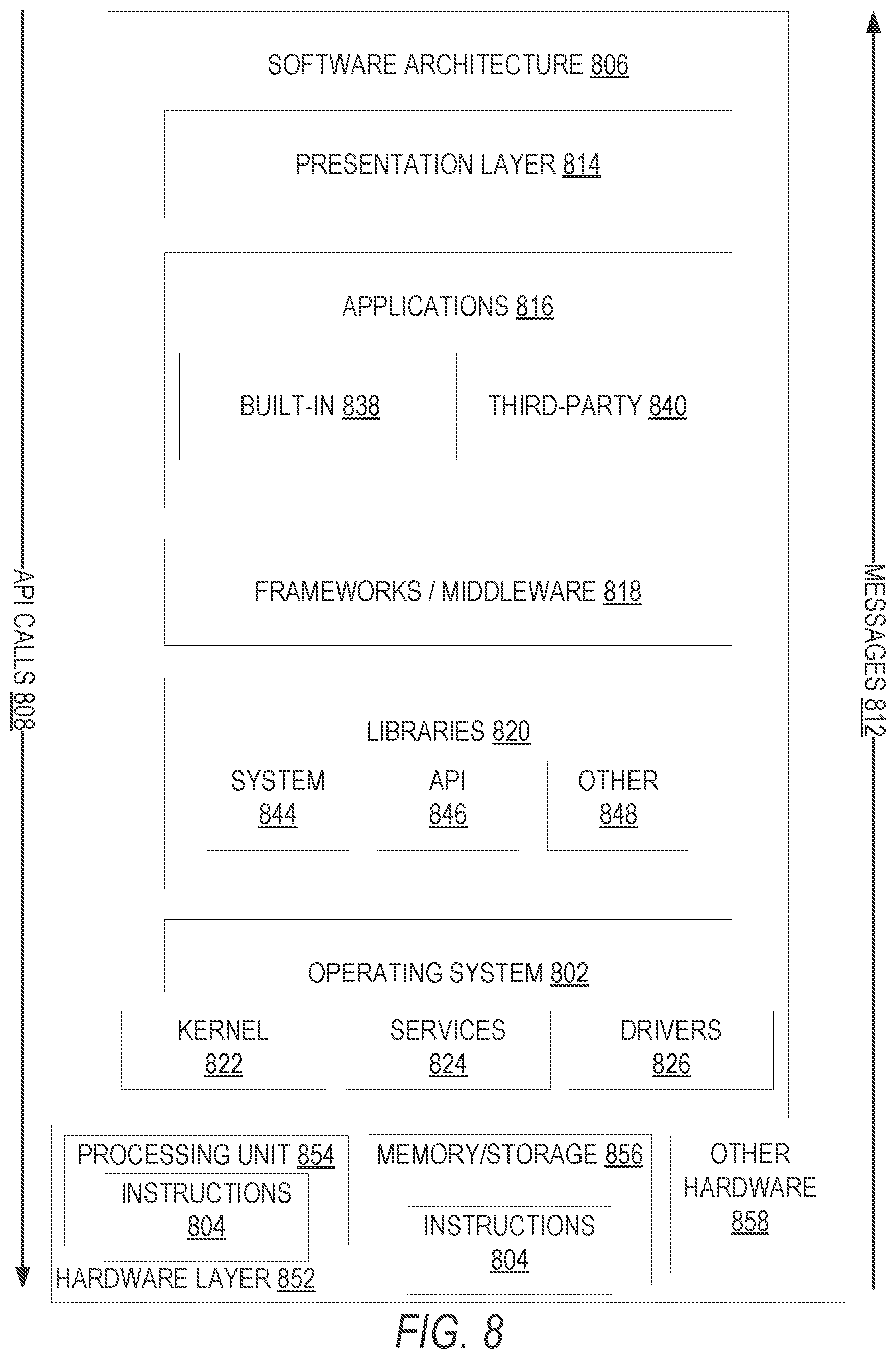 A story table 206 stores data regarding collections of messages and associated image, video, or audio data, which are compiled into a collection (e.g., a story or a gallery). The creation of a particular collection may be initiated by a particular user (e.g., each user for which a record is maintained in the entity table 202). A user may create a “personal story” in the form of a collection of content that has been created and sent/broadcast by that user. To this end, the UI of the messaging client application 104 may include an icon that is user-selectable to enable a sending user to add specific content to his or her personal story. The UI of the messaging client application 104 may include selectable options to enable a sending user to add a modified video clip that has a virtual object to his or her personal story. A collection may also constitute a “live story,” which is a collection of content from multiple users that is created manually, automatically, or using a combination of manual and automatic techniques. For example, a “live story” may constitute a curated stream of user-submitted content from various locations and events. Users whose client devices have location services enabled and are at a common location event at a particular time may, for example, be presented with an option, via a UI of the messaging client application 104, to contribute content to a particular live story. The live story may be identified to the user by the messaging client application 104, based on his or her location. The end result is a “live story” told from a community perspective. A further type of content collection is known as a “location story,” which enables a user whose client device 102 is located within a specific geographic location (e.g., on a college or university campus) to contribute to a particular collection. In some embodiments, a contribution to a location story may require a second degree of authentication to verify that the end user belongs to a specific organization or other entity (e.g., is a student on the university campus). The contents (e.g., values) of the various components of message 300 may be pointers to locations in tables within which content data values are stored. For example, an image value in the message image payload 306 may be a pointer to (or address of) a location within an image table 208. Similarly, values within the message video payload 308 may point to data stored within a video table 210, values stored within the message annotations 312 may point to data stored in an annotation table 212, values stored within the message story identifier 318 may point to data stored in a story table 306, and values stored within the message sender identifier 322 and the message receiver identifier 324 may point to user records stored within an entity table 202. Process 400 may be performed by the messaging server system 108 provide a communication interface in a gaming application to a user. At operation 401, the messaging application launches a gaming application. For example, the messaging client application 104 presents icons to a user representing various web-based gaming applications. In response to receiving a user selection of one of the icons, the messaging client application 104 may retrieve the HTML5 file of the corresponding web-based gaming application and instantiate resources needed by the gaming application. The messaging client application 104 then sends an instruction to web-based gaming application server 107 to launch the corresponding game. In particular, the HTML5 file of the gaming application, upon being opened or accessed by the messaging client application 104, may invoke an initialize function of the SDK of the gaming application platform 124. At operation 402, the messaging application determines a state in the messaging application from which the gaming application was launched. For example, the messaging client application 104 determines whether the game was launched from a discovery screen of the messaging application, a conversation, an instant message, or a non-conversation interface and include this information in the message to the gaming application. This information is sent to the gaming application in a message via the platform 124 (as discussed above). The gaming application may modify an aspect of a user interface of the gaming application based on the state from which the messaging application launched the gaming application. At operation 404, the messaging application generates for display, concurrently with a display of the gaming application, a communication interface that is associated with the messaging application. For example, the messaging application instructs the gaming application via platform 124 to present a chat bar that has one or more options for a user to select to communicate with one or more friends of the user from the messaging application. The chat bar that is presented in the gaming application is shown in more detail in For example, the chat bar includes an invite interface, chat bubbles, a voice party line option, a presence indicator, a support workflow option, a game audio option, and a leave game confirmation alert. The chat bar may also include a reward video viewer interface. The invite interface may provide the user with options to invite or remind other participants of their conversation to play the game. In some implementations, the invite interface obscures the entire screen of the gaming application. In some other implementations, the invite interface is scaled down to only obscure a portion of the gaming application interface. At operation 406, the messaging application modifies functionality of the communication interface based on the state in the messaging application from which the gaming application was launched. For example, when the gaming application is launched from a conversation (or an instant message or a non-discovery screen) in the messaging application, the cha