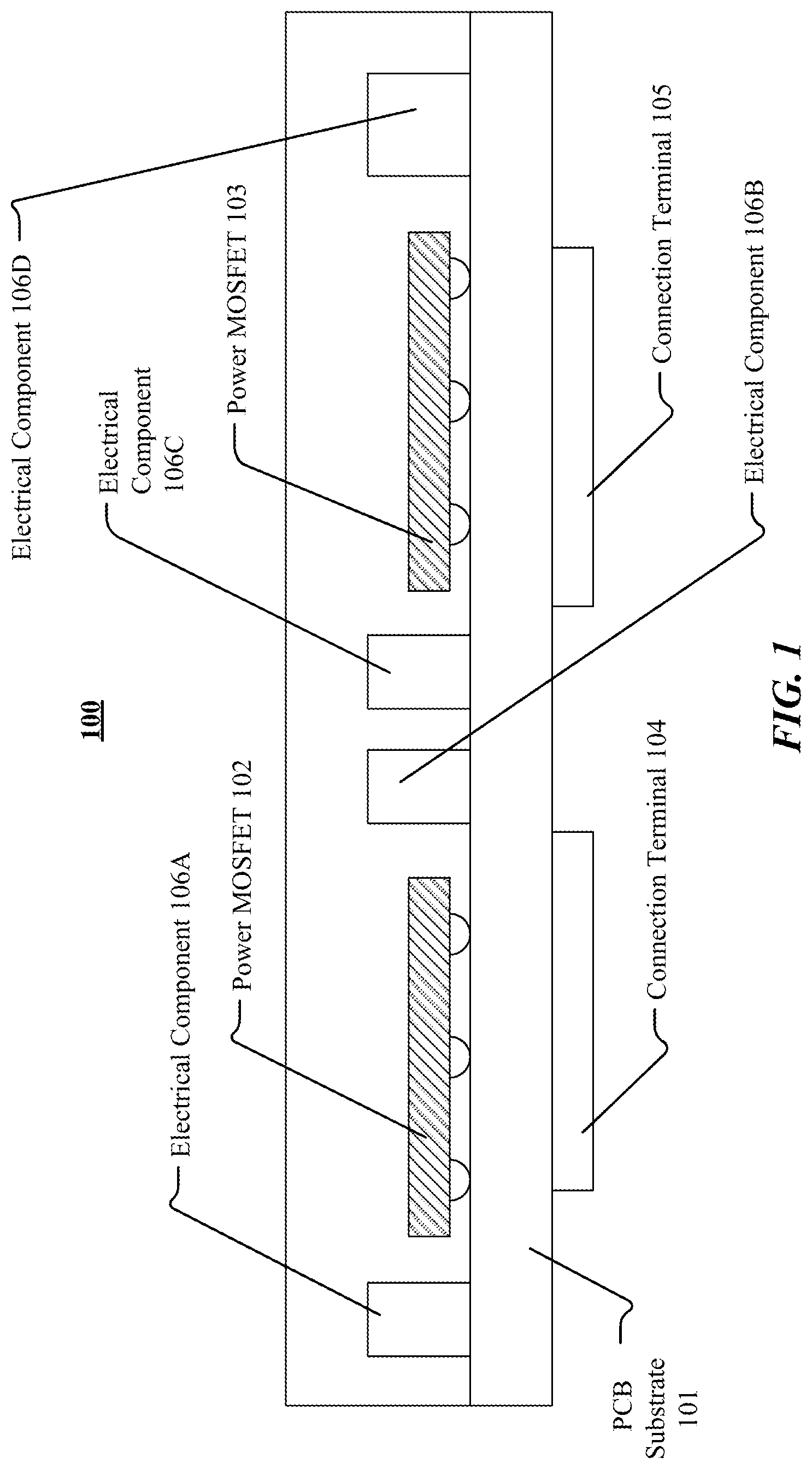 a first power MOSFET transistor comprising at least three pads for connecting to one or more first electrical components; and a printed-circuit board comprising at least a first copper layer, a second copper layer, and a third copper layer, wherein: