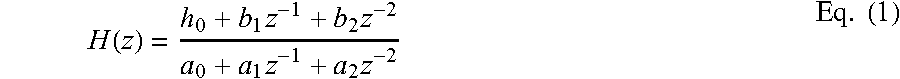 Y[n]=b0a0X[n-1]+b1a0X[n-1]+b2a0X[n-2]-a1a0Y[n-1]-a2a0Y[n-2]Eq.(2)