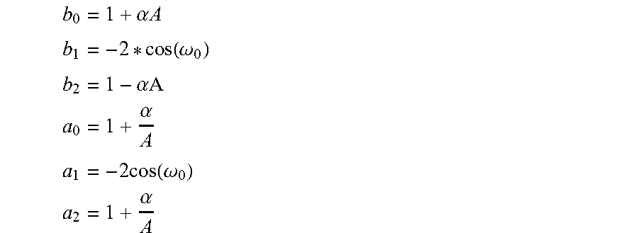 b0=1+αAb1=-2*cos(ω0)b2=1-αAa0=1+αAa1=-2cos(ω0)a2=1+αA