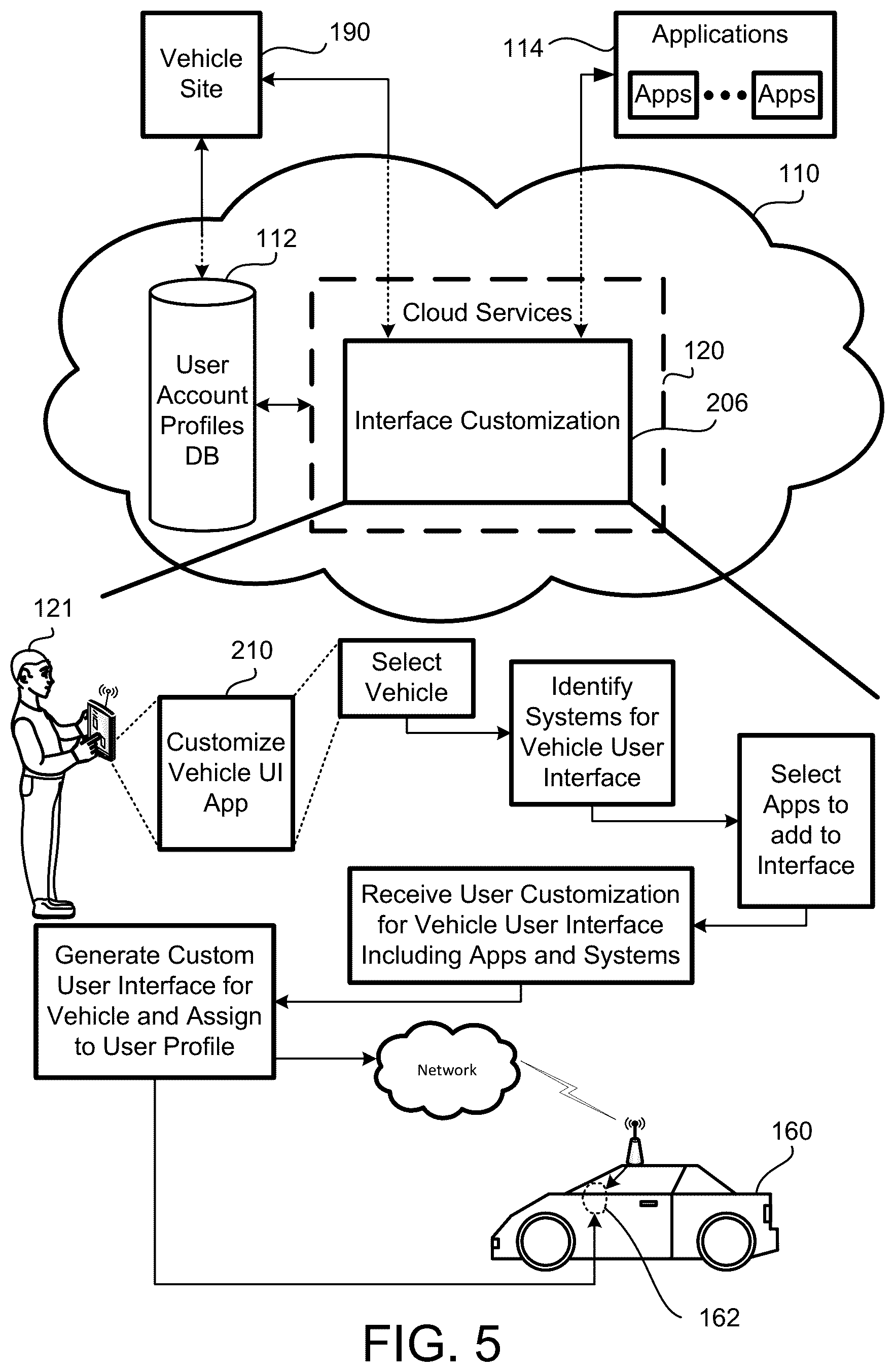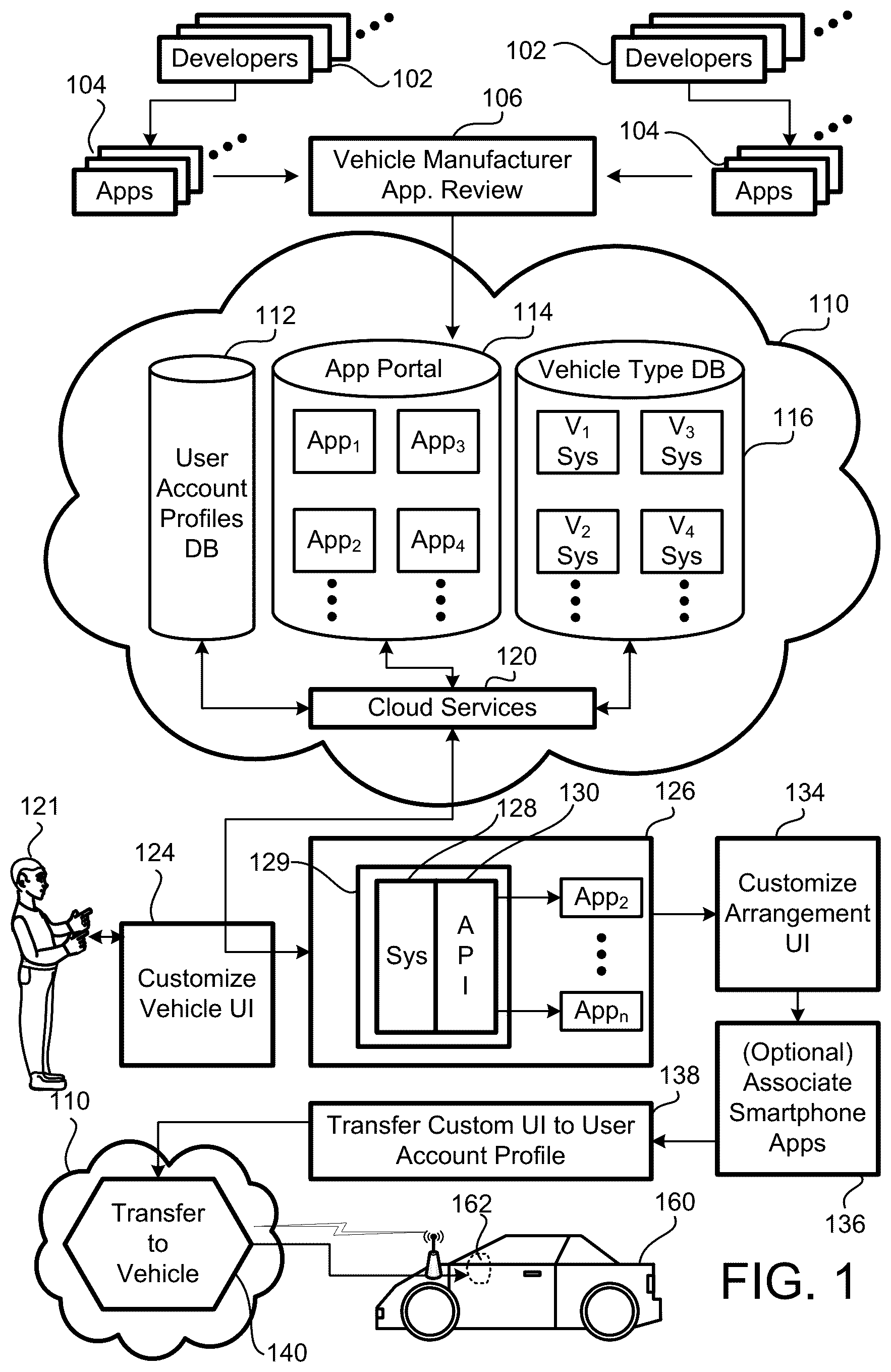In one embodiment, a method for customizing a user interface is provided. The method includes receiving a request to customize a user interface of a vehicle and providing selection options to identify a vehicle type among a plurality of vehicle types. Each vehicle type is associated with system components native to the vehicle type and one or more of the control interfaces that can be mapped to an application programming interface (API). The method includes identifying a plurality of applications available for the vehicle type, where each of the applications has a link to at least one of the control interfaces via the API of the system components. The method includes receiving selection of the vehicle type at cloud services, which interfaces with a website over the Internet or a backend of a website over the Internet.