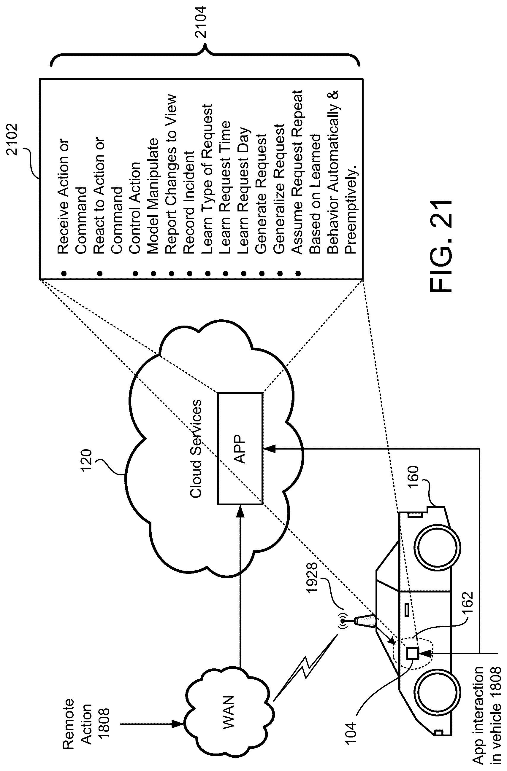 12. The system of claim 1, wherein the action is selected based on a profile of a user of the vehicle, and said selection is made at least in part using machine learning trained using data that is associated with the profile.