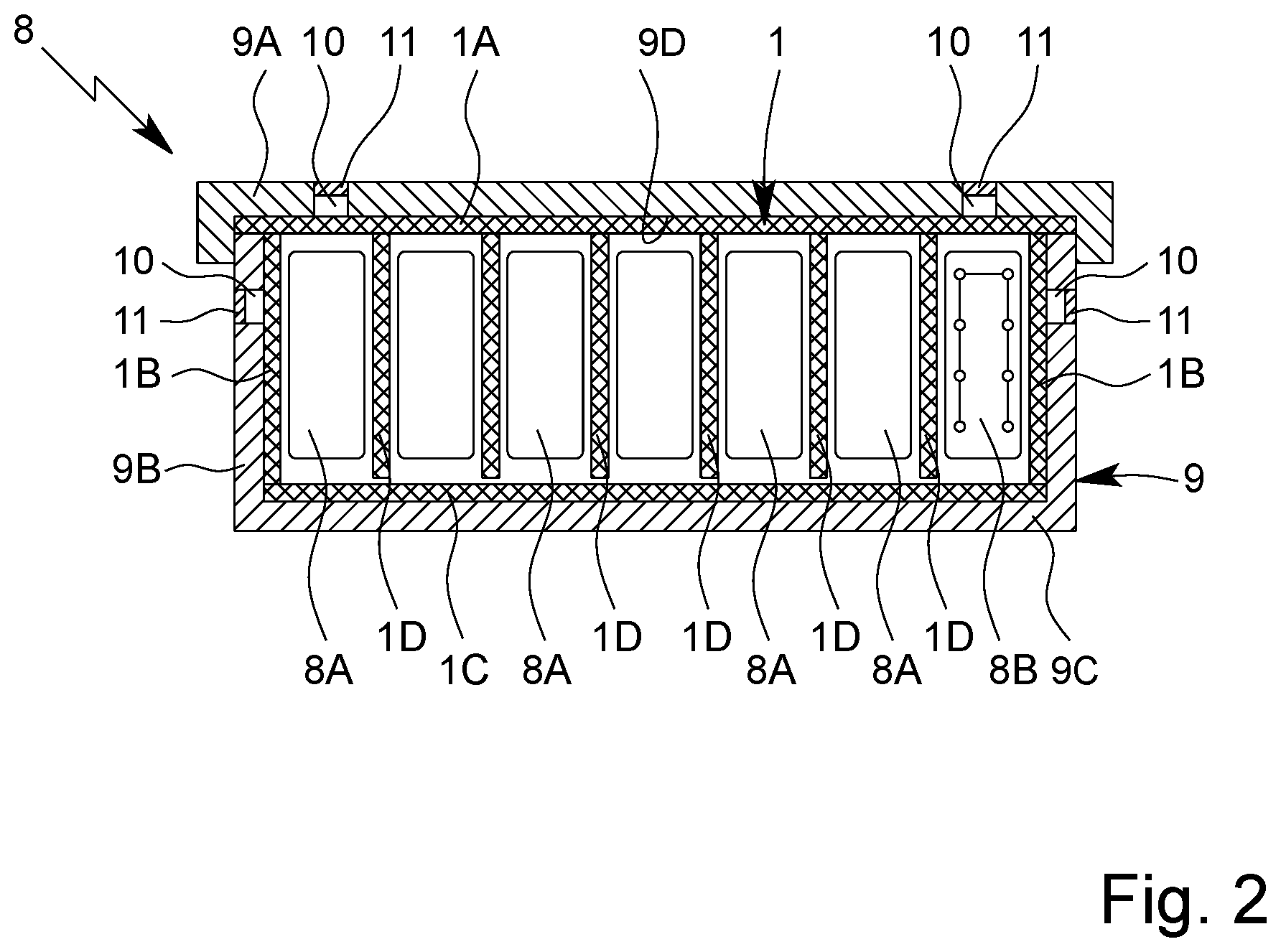 1-12. (canceled) 13. A protective element for thermal and/or electrical insulation and/or fire protection of a battery,