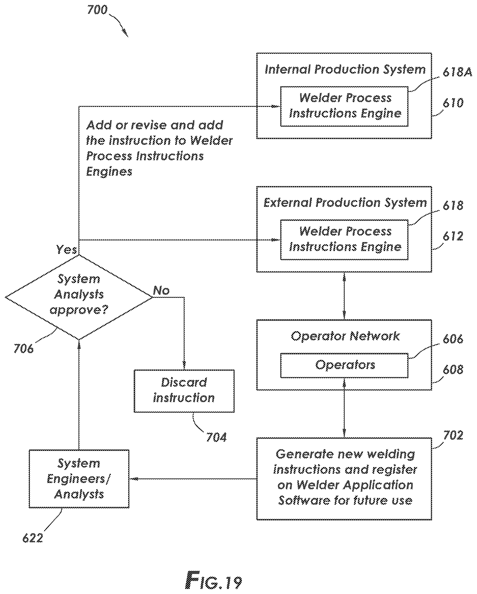 welder device APIs through which the external production system can communicate with the portable friction welding tool; external welder application software; external welder process instructions engine; and external security API protecting the external production system; an internal production system, comprising: