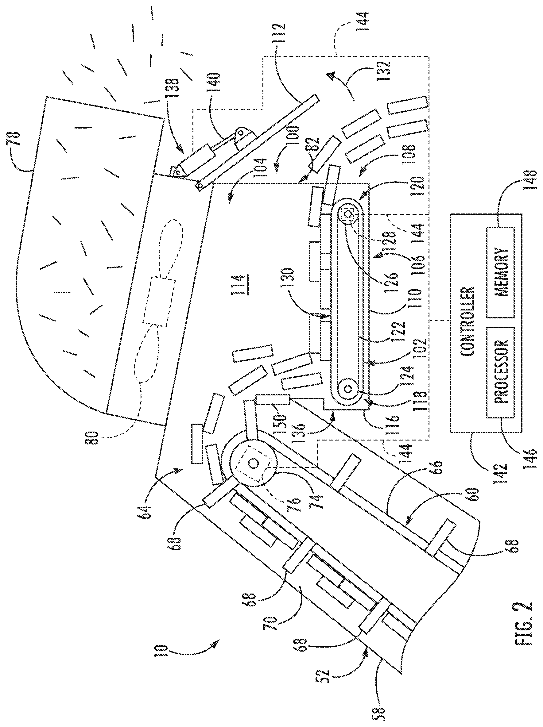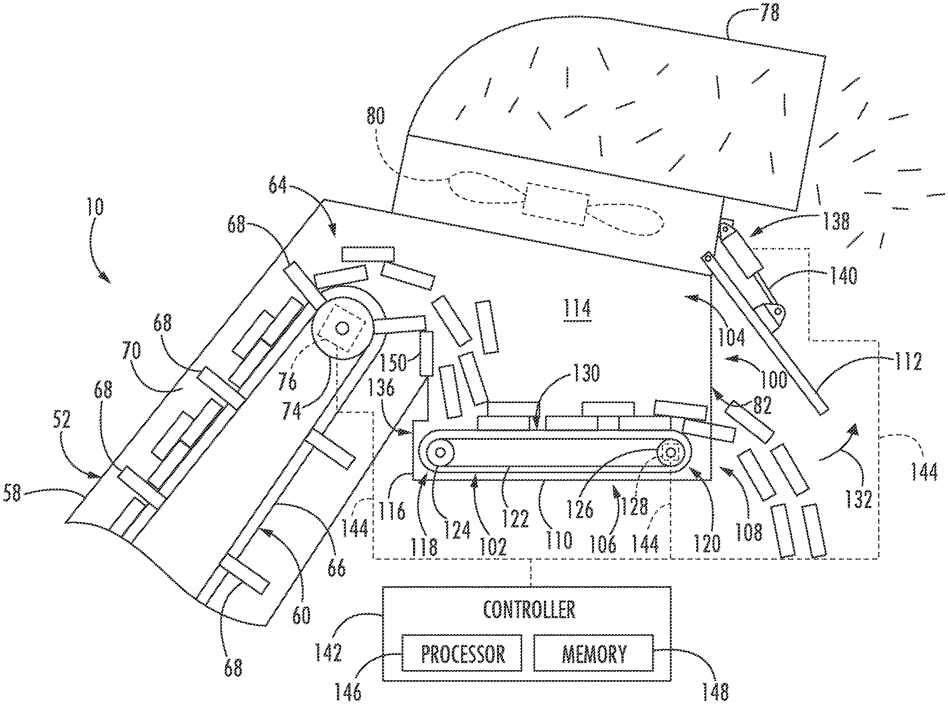 1-8. (canceled) 9. A method for operating a harvester, the harvester comprising an elevator assembly including an elevator extending between a proximal end and a distal end, the elevator assembly further including a storage hopper located adjacent to the distal end of the elevator, a conveyor extending within the storage hopper between a first end and a second end, and a door movable relative to a discharge opening of the storage hopper, the method comprising: