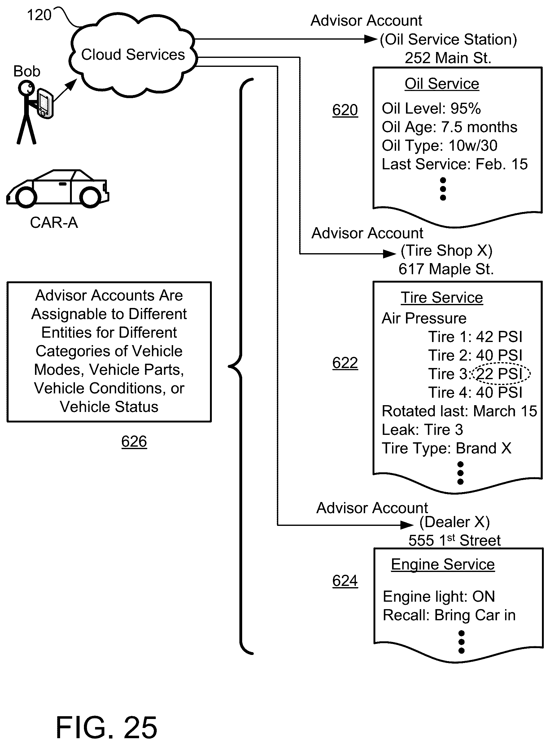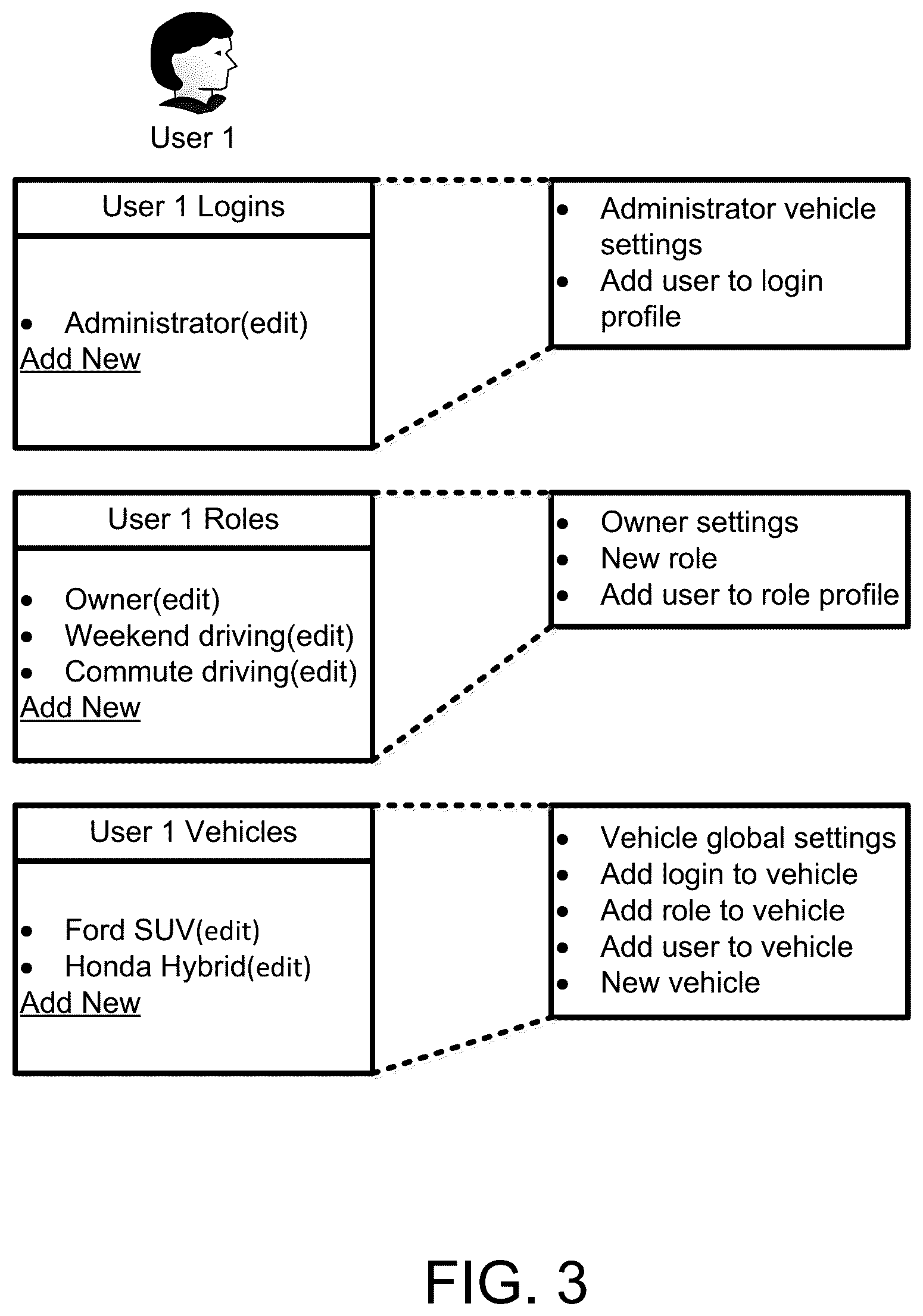 The present application is a continuation of U.S. application Ser. No. 18/125,448, filed on Mar. 23, 2023, entitled “METHODS AND SYSTEMS FOR SHARING E-KEYS TO ACCESS VEHICLES,” which is a continuation of U.S. application Ser. No. 17/461,959, filed on Aug. 30, 2021 (now U.S. Pat. No. 11,738,659, issued on Aug. 29, 2023) entitled “VEHICLES AND CLOUD SYSTEMS FOR SHARING E-KEYS TO ACCESS AND USE VEHICLES,” which is a continuation of U.S. application Ser. No. 16/653,958, filed on Oct. 15, 2019 (now U.S. Pat. No. 11,104,245, issued on Aug. 31, 2021), entitled “VEHICLES AND CLOUD SYSTEMS FOR SHARING E-KEYS TO ACCESS USE OF VEHICLES,” which is a continuation of U.S. application Ser. No. 15/854,241, filed on Dec. 26, 2017 (now U.S. Pat. No. 10,442,399, issued on Oct. 15, 2019), entitled “VEHICLES AND CLOUD SYSTEMS FOR SHARING E-KEYS TO ACCESS USE OF VEHICLES,” which is a continuation of U.S. application Ser. No. 15/607,418, filed on May 26, 2017 (now U.S. Pat. No. 10,407,026, issued on Sep. 10, 2019) entitled “VEHICLES AND CLOUD SYSTEMS FOR ASSIGNING TEMPORARY E-KEYS TO ACCESS USE OF A VEHICLE,” which is a continuation of U.S. application Ser. No. 15/344,566, filed on Nov. 6, 2016 (now U.S. Pat. No. 9,663,067, issued on May 30, 2017) entitled “METHODS AND SYSTEMS FOR USING CLOUD SERVICES TO ASSIGN E-KEYS TO ACCESS VEHICLES AND SHARING VEHICLE USE VIA ASSIGNED E-KEYS,” which is a continuation of U.S. application Ser. No. 15/180,306, filed on Jun. 13, 2016 (now U.S. Pat. No. 9,499,129, issued on Nov. 22, 2016) entitled “METHODS AND SYSTEMS FOR USING CLOUD SERVICES TO ASSIGN E-KEYS TO ACCESS VEHICLES,” which is a continuation of U.S. application Ser. No. 14/303,442, filed on Jun. 12, 2014 (now U.S. Pat. No. 9,365,188, issued on Jun. 14, 2016) entitled “METHODS AND SYSTEMS FOR USING CLOUD SERVICES TO ASSIGN E-KEYS TO ACCESS VEHICLES,” which is a continuation of U.S. application Ser. No. 14/063,638, filed on Oct. 25, 2013 (now U.S. Pat. No. 9,189,900, issued on Nov. 17, 2015) entitled “METHODS AND SYSTEMS FOR ASSIGNING E-KEYS TO USERS TO ACCESS AND DRIVE VEHICLES,” which is a continuation-in-part of U.S. application Ser. No. 13/842,158 filed on Mar. 15, 2013 (now U.S. Pat. No. 9,229,905, issued on Jan. 5, 2016) entitled “METHODS AND SYSTEMS FOR DEFINING VEHICLE USER PROFILES AND MANAGING USER PROFILES VIA CLOUD SYSTEMS AND APPLYING LEARNED SETTINGS TO USER PROFILES,” which claimed priority to U.S. Provisional Patent Application No. 61/745,729, filed on Dec. 24, 2012, and entitled “METHODS AND SYSTEMS FOR ELECTRIC VEHICLE (EV) CHARGING, CHARGING SYSTEMS, INTERNET APPLICATIONS AND USER NOTIFICATIONS,” each of which is herein incorporated by reference. U.S. application Ser. No. 14/063,638, filed on Oct. 25, 2013 (now U.S. Pat. No. 9,189,900, issued on Nov. 17, 2015) is a continuation-in-part of U.S. application Ser. No. 13/452,882, filed Apr. 22, 2012 (now U.S. Pat. No. 9,123,035, issued on Sep. 1, 2015) and entitled “ELECTRIC VEHICLE (EV) RANGE EXTENDING CHARGE SYSTEMS, DISTRIBUTED NETWORKS OF CHARGE KIOSKS, AND CHARGE LOCATING MOBILE APPS”, which claims priority to U.S. Provisional Application No. 61/478,436, filed on Apr. 22, 2011, each of which is incorporated herein by reference. The present invention relates to systems and methods for generating and sharing electronic keys (e-Keys) with users and cloud-based processing systems. Vehicles, such as motorized vehicles and electric vehicles have been around for some time. Vehicles provide a means that enable humans to drive from place to place. In today's world, vehicles have become an indispensable mode of transportation, and provide the freedom to travel at any time of day and for various distances. Vehicles can be publicly operated or can be privately owned. Humans most commonly operate vehicles, no matter the type, whether electric or combustion engine based. In recent years, technology has been advancing to allow for better wireless interfacing and networking with vehicles. It is in this context that embodiments of the invention arise. The methods, systems and apparatus are provided for connected vehicles and cloud based processing. In one embodiment, a method is provided that includes receiving a request to generate electronic key (e-key) for an identified recipient to use a vehicle. The request includes identifying information for enabling sending of the e-key to the recipient via an electronic transmission. The request includes a condition of use of the vehicle. The method includes generating the e-key. The e-key is associated with the condition of use of the vehicle. The method includes transmitting the e-key to a device or user account of the recipient. The method further includes transmitting data to the vehicle to enable use of the vehicle via the e-key and receiving use data regarding use of the vehicle for when the vehicle is used via the e-key. The use data identifies information regarding the use of the vehicle. The information identifies a violations of the condition of use. In some implementations, the method includes sending a warning notification to the device of the recipient, or the vehicle, or both the device of the recipient, the vehicle warning notification identifying the violation of the condition of use. In some implementations, the receiving and the transmitting is processed by at least one server having logic for generating e-keys and receiving data regarding use of the vehicle when the e-key is used for the vehicle, the server being accessible over the Internet, the vehicle having wireless communication systems for communicating with the server and for communicating with devices local to the vehicle; wherein the request to generate the e-key is received from one of an administrator of the vehicle, or an owner of the vehicle, or a rental car operator of the vehicle, or a fleet operator for the vehicle, or a user account holder that has the vehicle associated thereto, or a user
