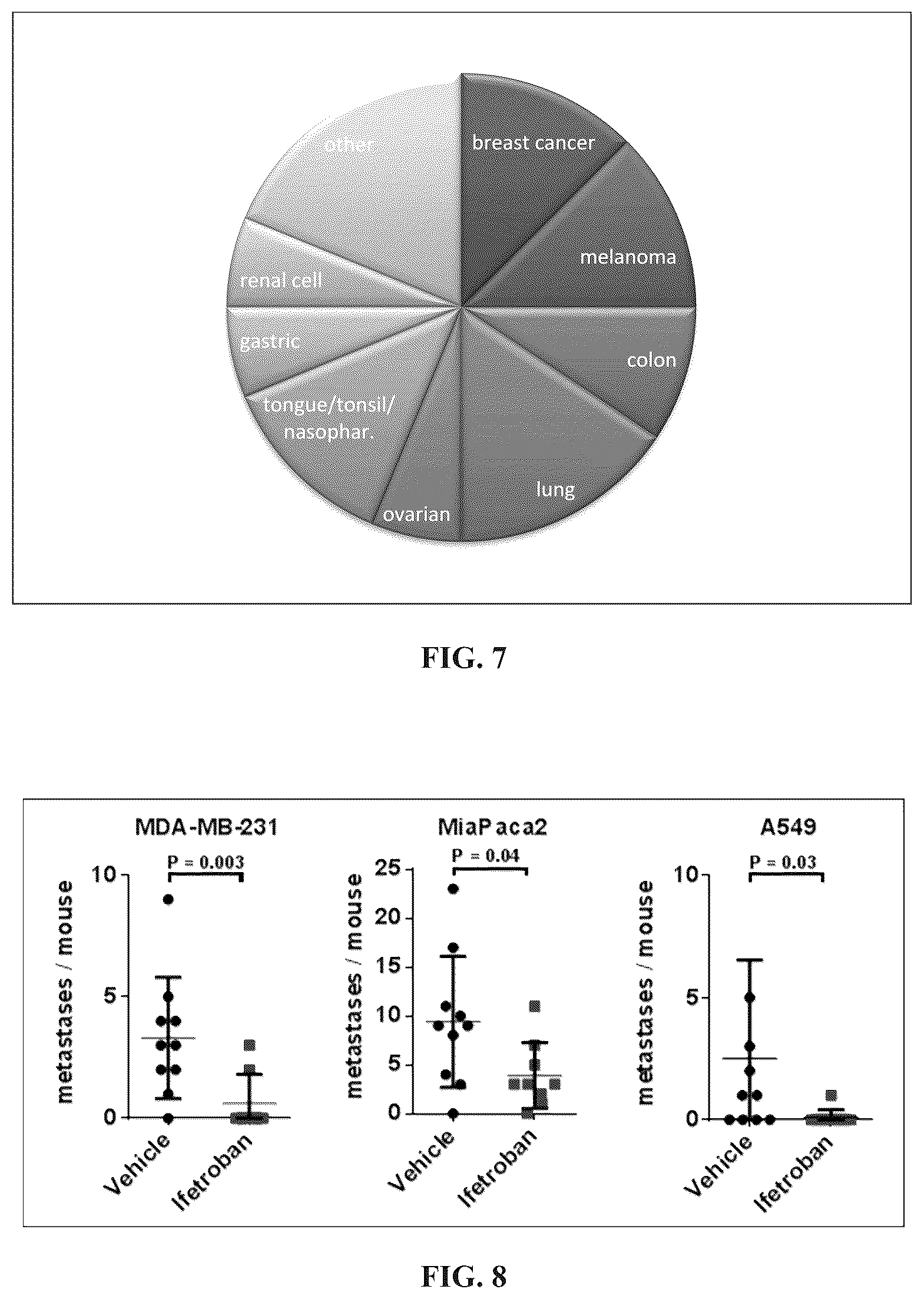 While several embodiments of the present invention have been described and illustrated herein, those of ordinary skill in the art will readily envision a variety of other means and/or structures for performing the functions and/or obtaining the results and/or one or more of the advantages described herein, and each of such variations and/or modifications is deemed to be within the scope of the present invention. More generally, those skilled in the art will readily appreciate that all parameters, dimensions, materials, and configurations described herein are meant to be exemplary and that the actual parameters, dimensions, materials, and/or configurations will depend upon the specific application or applications for which the teachings of the present invention is/are used. Those skilled in the art will recognize, or be able to ascertain using no more than routine experimentation, many equivalents to the specific embodiments of the invention described herein. It is, therefore, to be understood that the foregoing embodiments are presented by way of example only and that, within the scope of the appended claims and equivalents thereto, the invention may be practiced otherwise than as specifically described and claimed. The present invention is directed to each individual feature, system, article, material, kit, and/or method described herein. In addition, any combination of two or more such features, systems, articles, materials, kits, and/or methods, if such features, systems, articles, materials, kits, and/or methods are not mutually inconsistent, is included within the scope of the present invention. For reasons of completeness, various aspects of the invention are set out in the following numbered clauses: Clause 1. A method of inhibiting solid tumor metastasis comprising administering to a subject in need thereof, an amount of a thromboxane A2 receptor antagonist, or a pharmaceutically acceptable salt or composition thereof, effective to inhibit metastasis of a solid tumor in the subject. Clause 2. The method of clause 1, wherein the amount of the thromboxane A2 receptor antagonist, or the pharmaceutically acceptable salt or composition thereof, is effective to inhibit the formation of circulating tumor cell clusters. Clause 3. The method of clause 1 or 2, wherein the amount of the thromboxane A2 receptor antagonist, or the pharmaceutically acceptable salt or composition thereof, is effective to inhibit movement of circulating tumor cell clusters. Clause 4. The method of any of clauses 1-3, wherein the amount of the thromboxane A2 receptor antagonist, or the pharmaceutically acceptable salt or composition thereof, is effective to inhibit the aggregation of circulating tumor cell clusters with platelets. Clause 5. The method of any of clauses 1-4, wherein the amount of the thromboxane A2 receptor antagonist, or the pharmaceutically acceptable salt or composition thereof, is effective to inhibit integrin- and/or selectin-mediated cell survival signaling. Clause 6. The method of any of clauses 1-5, wherein the amount of the thromboxane A2 receptor antagonist, or the pharmaceutically acceptable salt or composition thereof, is effective to reduce the rate of metastatic recurrence. Clause 7. The method of any of clauses 1-6, wherein the thromboxane receptor antagonist is ifetroban, GR32191, SQ29548, sulotroban, daltroban, linotroban, ramatroban, seratrodast, terutroban, Z-235, LCB-2853, SQ28668, ICI 192605, AH23848, 0N03708, CPI-211, or pinane TXA2. Clause 8. The method of clause 7, wherein the thromboxane receptor antagonist is ifetroban. Clause 9. The method of any of clauses 1-6, wherein the thromboxane receptor antagonist is a compound of formula (I), Clause 10. The method of clause 9, wherein the compound of formula (I) has formula (I-h) Clause 11. The method of clause 9 or 10, wherein R is CO2H, or an alkali metal salt thereof. Clause 12. The method of any of clauses 9-11, wherein m is 1, n is 2, R2is hydrogen, and R1is C1-8alkyl. Clause 13. The method of any of clauses 9-12, wherein X is O. Clause 14. The method of any of clauses 1-13, wherein the subject has a primary tumor of a cancer selected from the group consisting of lung cancer, non-small cell lung cancer, breast cancer, ovarian cancer, prostate cancer, testicular cancer, pancreatic cancer, melanoma, sarcoma, cervical cancer, endometrial cancer, liver cancer, uterine cancer, kidney cancer, gastroesophageal cancer, colon cancer, bladder cancer, mouth cancer, and throat cancer. Clause 15. The method of any of clauses 1-14, wherein the amount of the thromboxane A2 receptor antagonist, or the pharmaceutically acceptable salt or composition thereof, is effective to inhibit metastasis of the solid tumor in the subject without inhibiting the growth or development of the solid tumor. Clause 16. The method of any of clauses 1-15, further comprising administering at least one chemotherapeutic agent chosen from an alkylating agent, an anti-metabolite, an anti-tumor antibiotic, an anti-cytoskeletal agent, a topoisomerase inhibitor, an antihormonal agent, a targeted therapeutic agent, immunotherapy, and combinations thereof. Clause 17. The method of any of clauses 1-16, wherein the thromboxane A2 receptor antagonist, or the pharmaceutically acceptable salt or composition thereof, is administered after a chemotherapy treatment regimen. Clause 18. The method of any of the foregoing clauses, wherein the subject has a T399A gain of function mutation of the thromboxane A2 receptor. Clause 19. A thromboxane A2 receptor antagonist, or a pharmaceutically acceptable salt or composition thereof, for use in the treatment or inhibition of solid tumor metastasis in a subject. Clause 20. A thromboxane A2 receptor antagonist, or a pharmaceutically acceptable salt or composition thereof, for use in a method of treating or inhibiting solid tumor metastasis, wherein the method comprises administering the thromboxane A2 receptor antagonist to a subject in ne