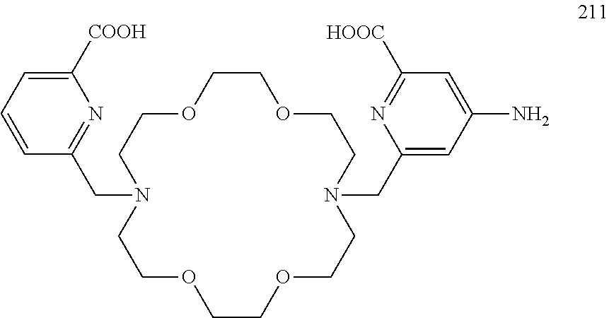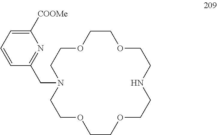 Final products were identified and characterized using thin layer chromatography, analytical HPLC and mass spectrometry. NMR spectroscopy was used to confirm the structure of compound 406 and macropa-NCS. NMR analyses were performed using a Bruker Avance III 500 MHz spectrometer. Spectra are reported in CDCl3or DMSO-d6. Analytical HPLC was performed using an XSelect™ CSH™ C18 5 m 4.6×50 mm column (Waters). Mass determinations were performed by LCMS analysis using a Waters ACQUITY UPLC® coupled to a Waters SQ Detector 2. The purity of all compounds evaluated in the biological assay was >95% purity as judged by analytical HPLC.