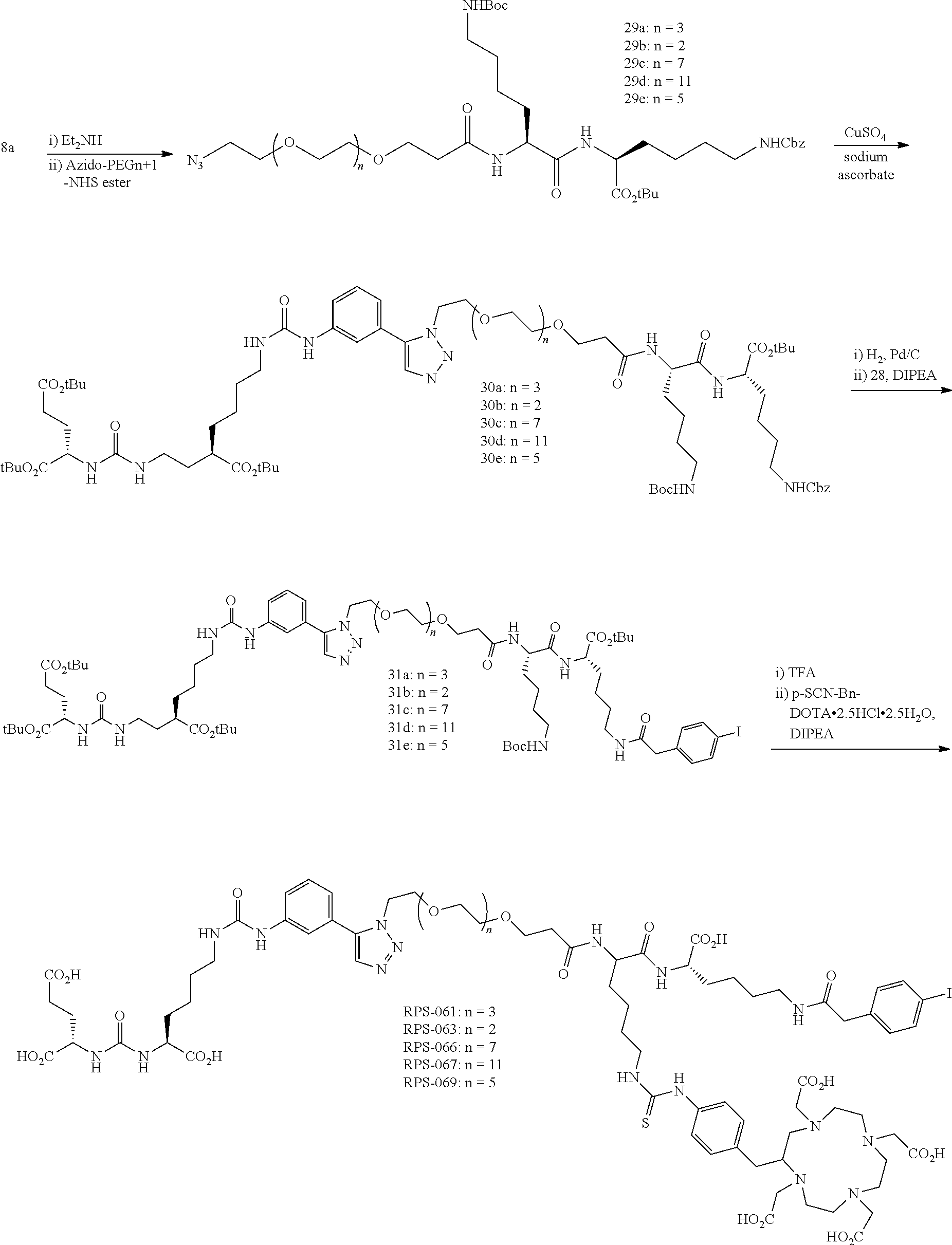 Preparation of (((S)-1-Carboxy-5-(3-(3-(1-((14S,45S)-45-carboxy-14-(4-(3-(2-carboxy-6-((16-((6-carboxypyridin-2-yl)methyl)-1,4,10,13-tetraoxa-7,16-diazacyclooctadecan-7-yl)methyl)pyridin-4-yl)thioureido)butyl)-54-(4-iodophenyl)-12,15,43,51-tetraoxo-3,6,9,19,22,25,28,31,34,37,40-undecaoxa-13,16,44,50-tetraazatetrapentacontyl)-1H-1,2,3-triazol-4-yl)phenyl)ureido)pentyl)carbamoyl)-L-glutamic acid (macropa-RPS-074).