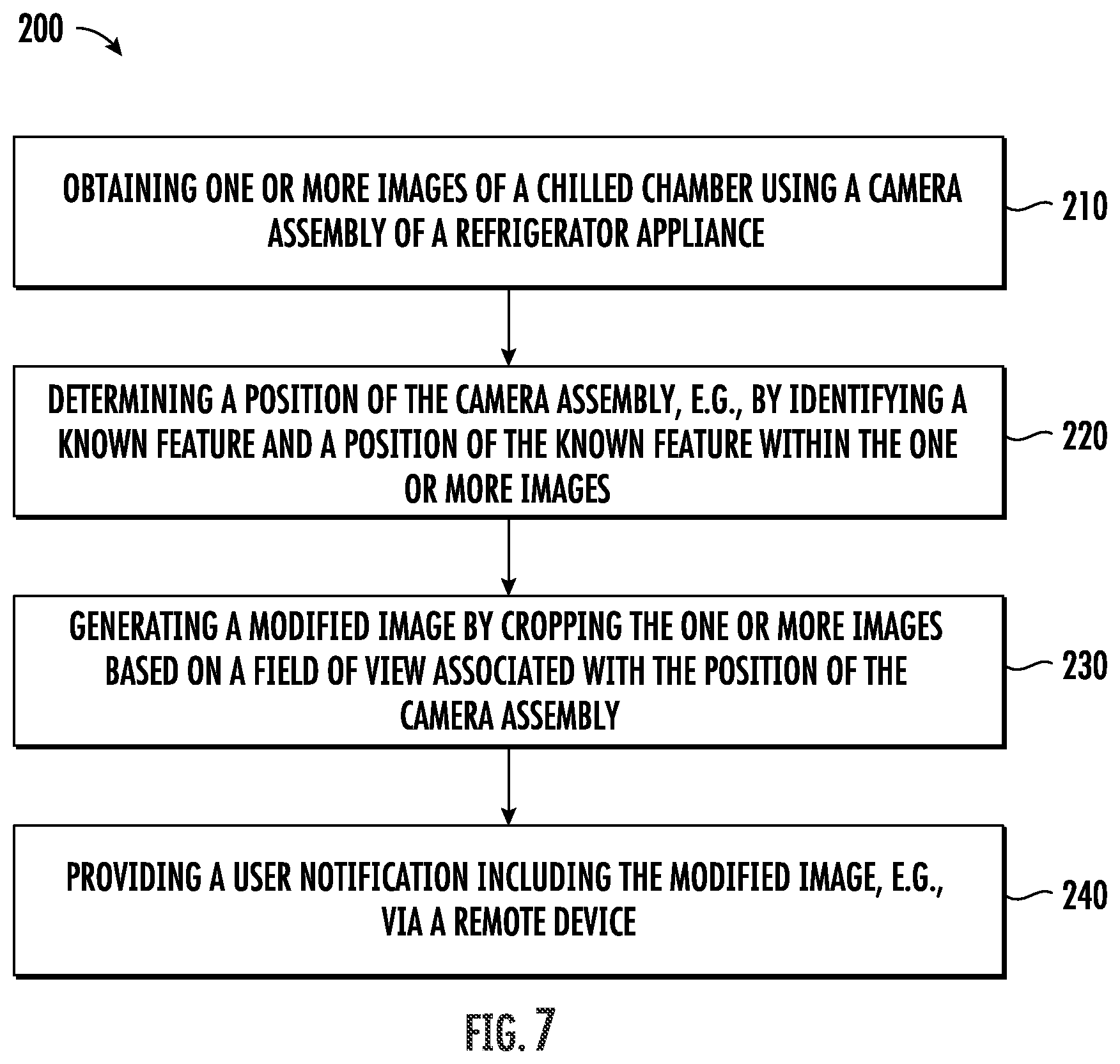 FIG. 7 depicts steps performed in a particular order for purposes of illustration and discussion. Those of ordinary skill in the art, using the disclosures provided herein, will understand that the steps of any of the methods discussed herein can be adapted, rearranged, expanded, omitted, or modified in various ways without deviating from the scope of the present disclosure. Moreover, although aspects of method 200 are explained using refrigerator appliance 100 as an example, it should be appreciated that this method may be applied to the operation of any suitable refrigerator appliance or any other appliance where inventory management is desirable.