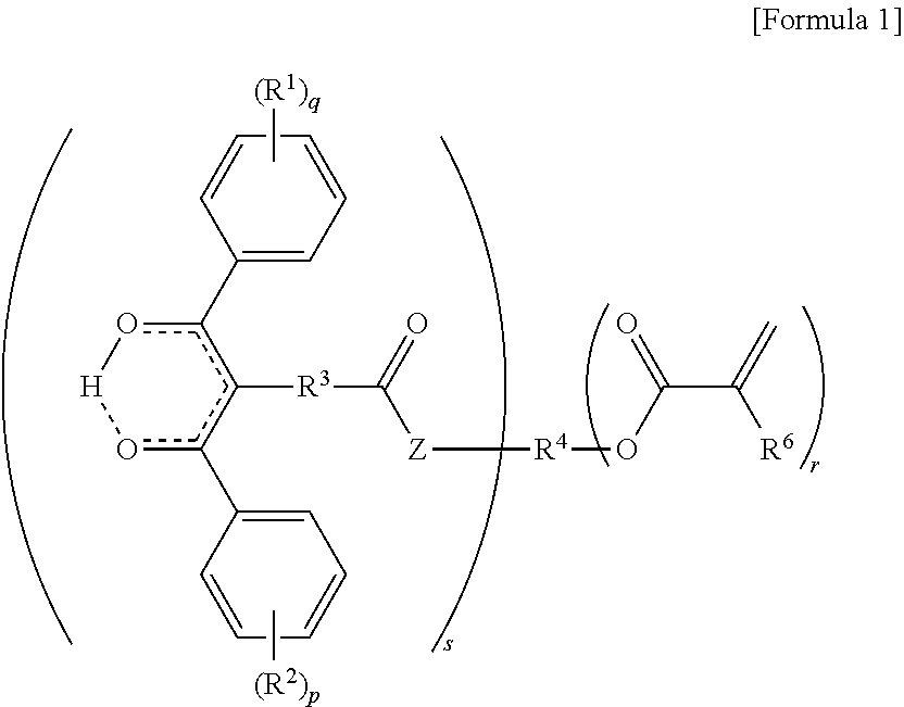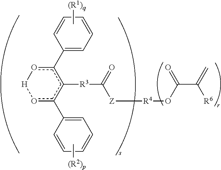 wherein s relates to the number of dibenzoylmethane-derived moieties present and is an integer between 1 and 10.