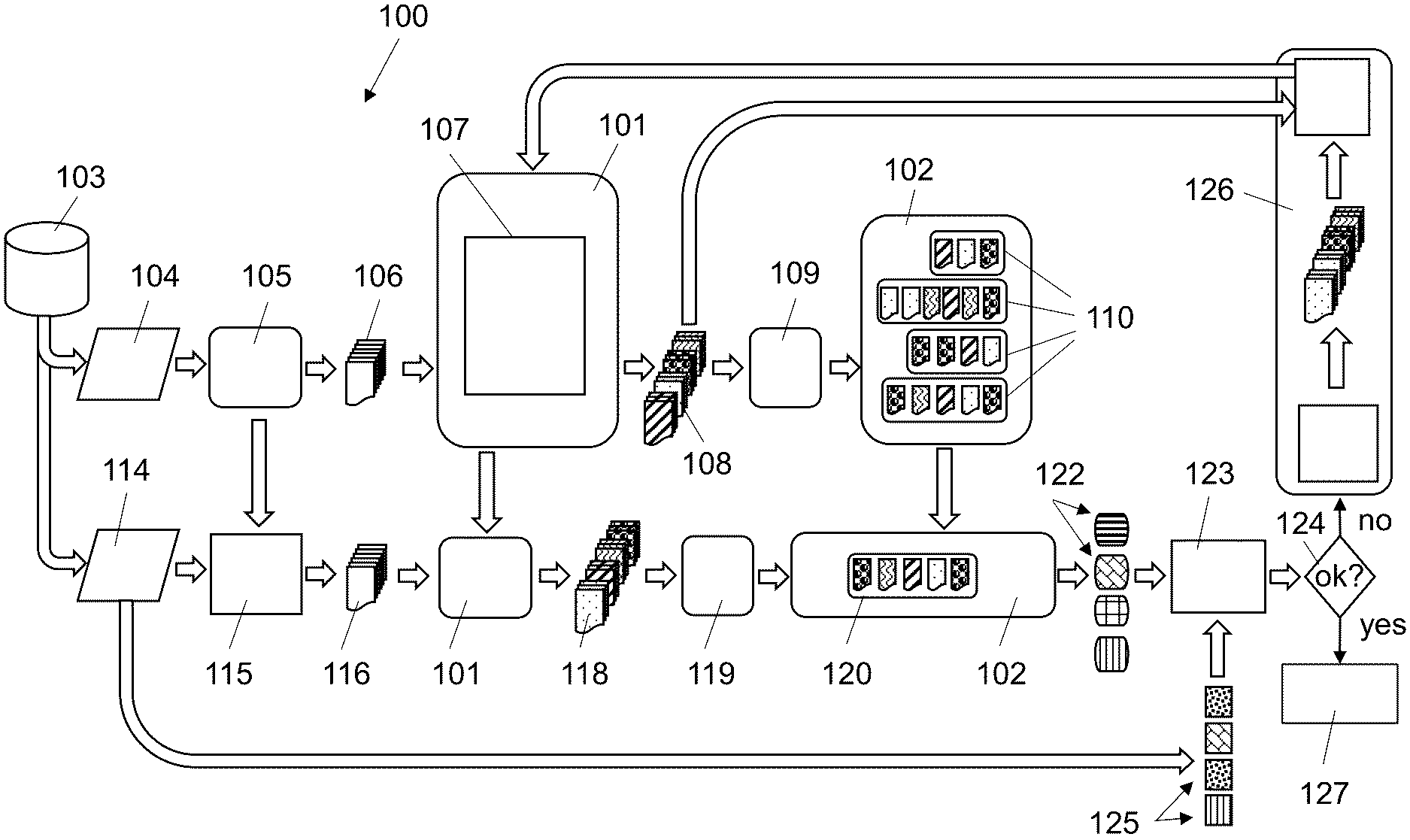 In the repeating step 126 several processing steps may be performed at the mental categories 108 and/or at the algorithm forming them 107, based on the result of the comparing step 123, 124, as illustrated in block 126. For example, the creation of new mental categories, strategies, et cetera, and comparison with the previous mental categories, as schematically illustrated in block 126.