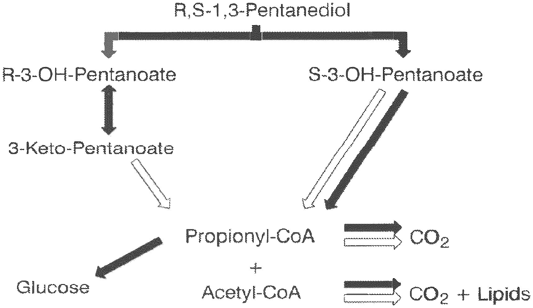 Blood glucose levels (mg/dL) following BHP and BKP administration 0 min. 30 min. 60 min. 90 min. 120 min. 150 min. Subject 1 BHP 84 85 75 79 86 91 BKP 88 84 79 83 85 87 Subject 2 BHP 84 76 66 79 81 90 BKP 91 91 83 76 90 81 Combined BHP 84 80.5 70.5 79 83.5 90.5 BKP 89.5 87.5 81 79.5 87.5 84 Blood ketone levels (mMol) following BHP and BKP administration 0 min. 30 min. 60 min. 90 min. 120 min. 150 min. Subject 1 BHP 0.1 1.8 0.7 0.2 0.2 0.2 BKP 0.1 0.1 0.2 0.1 0.1 0.1 Subject 2 BHP 0.1 1.4 0.4 0.2 0.4 0.2 BKP 0.1 0.1 0.2 0.1 0.1 0.1 Combined BHP 0.1 1.6 0.55 0.2 0.3 0.2 BKP 0.1 0.1 0.2 0.1 0.1 0.1 VAS of Well-Being following BHP and BKP administration 0 min. 30 min. 60 min. 90 min. 120 min. 150 min. Subject 1 BHP 7 5 5 7 5 6 BKP 7 7 9 9 9 9 Subject 2 BHP 5 5 4 5 4 4 BKP 6 6 6 6 7 7 Combined BHP 6 5 4.5 6 4.5 5 BKP 6.5 6.5 7.5 7.5 8 8 VAS of Energy following BHP and BKP administration 0 min. 30 min. 60 min. 90 min. 120 min. 150 min. Subject 1 BHP 5 4 5 7 5 7 BKP 7 7 7 8 8 9 Subject 2 BHP 3 3 2 3 4 5 BKP 5 6 7 6 7 7 Combined BHP 4 3.5 3.5 5 4.5 6 BKP 6 6.5 7 7 7.5 8 VAS of Focus following BHP and BKP administration 0 min. 30 min. 60 min. 90 min. 120 min. 150 min. Subject 1 BHP 5 5 5 5 5 5 BKP 6 5 7 7 7 8 Subject 2 BHP 2 3 3 3 5 5 BKP 5 6 5 6 7 6 Combined BHP 3.5 4 3 3 5 5 BKP 5.5 5.5 6 6.5 7 7 Example 2: C5 Ketone Administration as a Method to Lower Exertion During Exercise