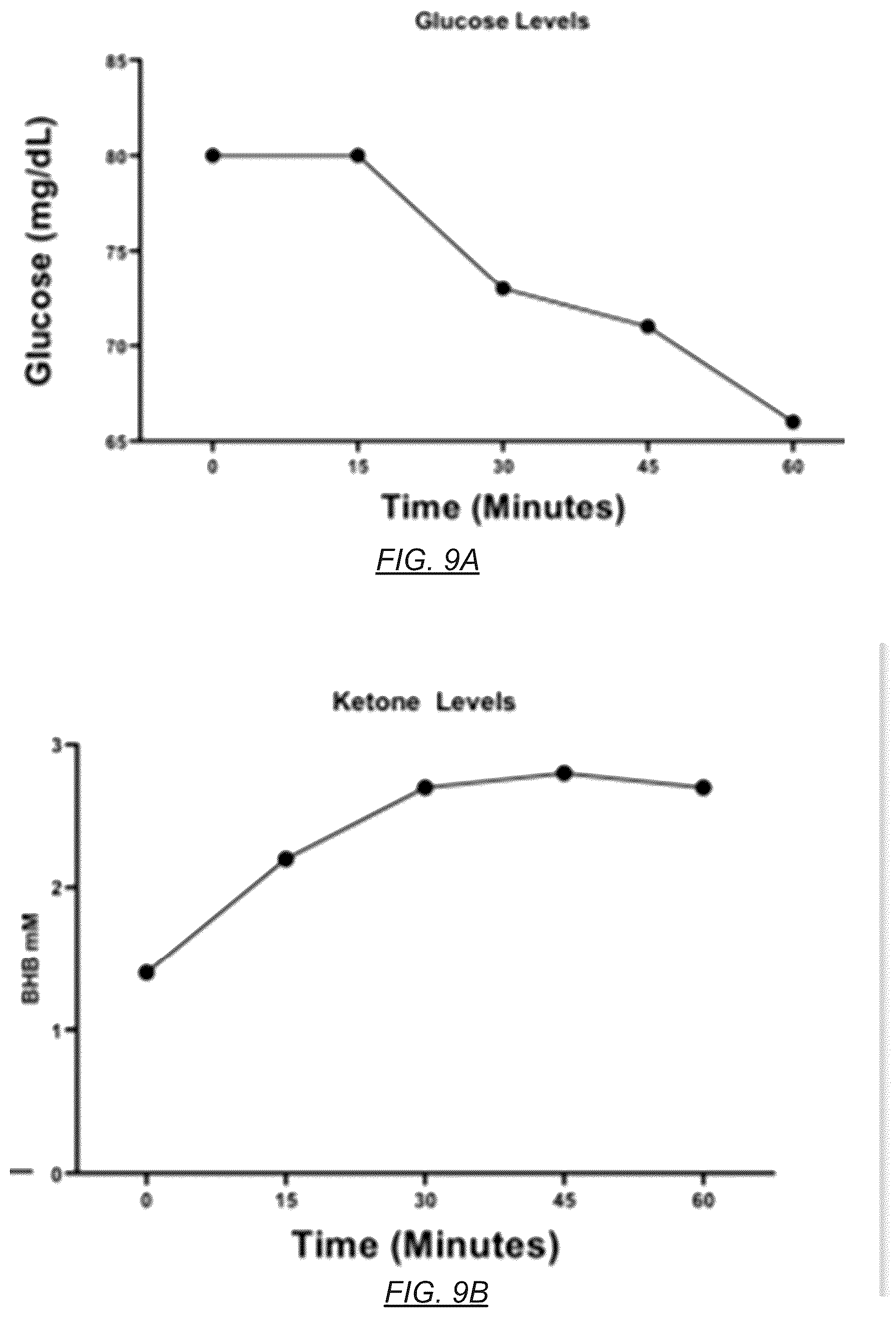 Blood lactate levels (mMol) following BHP administration 0 min. 20 min. 40 min. 60 min. 80 min. Blood Ketones (mmol/L) 0.3 0.6 1.8 1.1 0.5 Blood Glucose (mg/dL) 99.5 103 102.5 94.5 92.5 Blood Lactate (mmol/L) 1.3 1.4 0.7 0.9 1.1 Example 4: BHP and BKP Effects on Subject Blood Glucose and Ketone Levels; and Subject Well-Being, Energy, and Focus