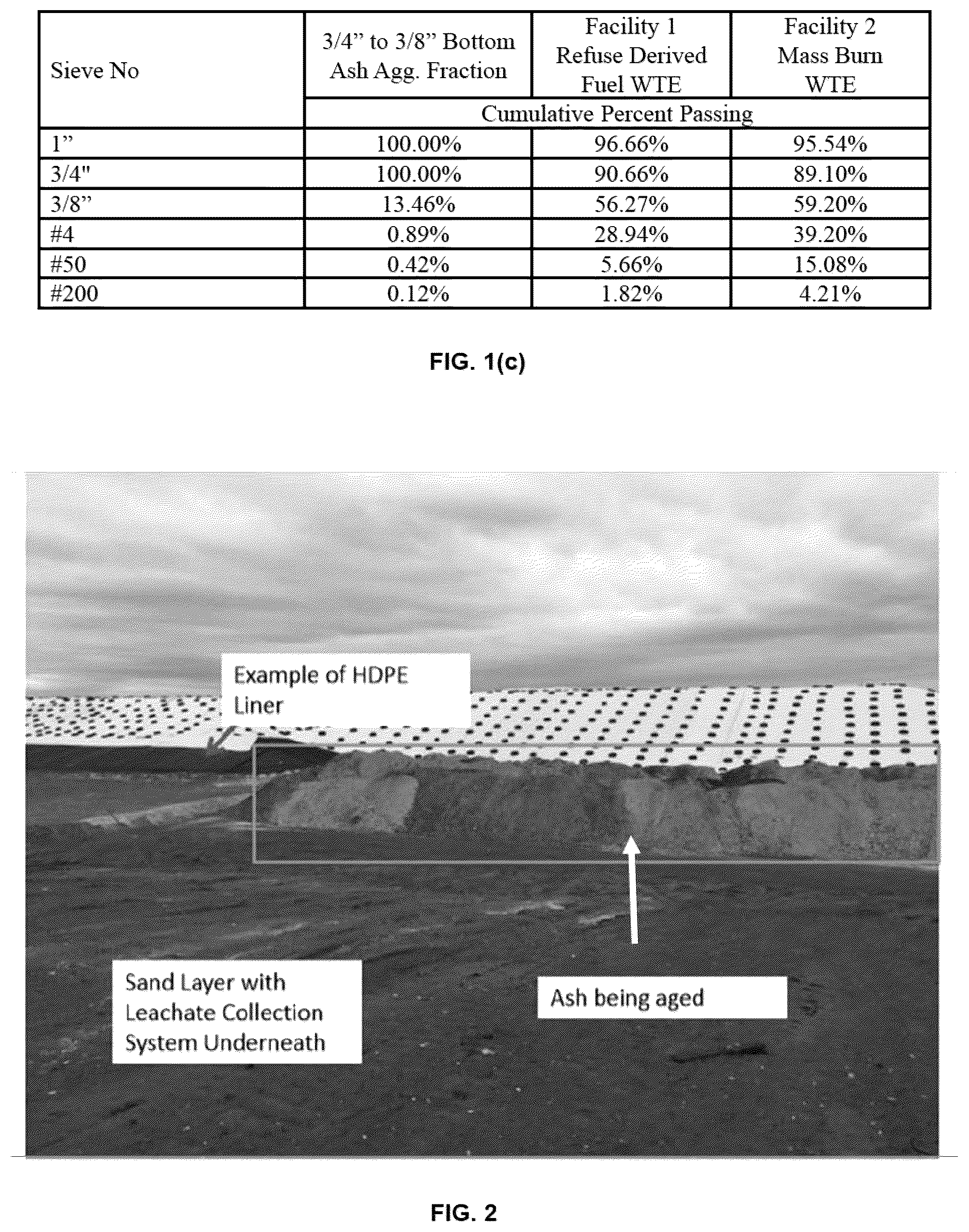 10. The composition of claim 1, wherein the WTE BA aggregate fraction is from about 25% to about 50% of the total composition.