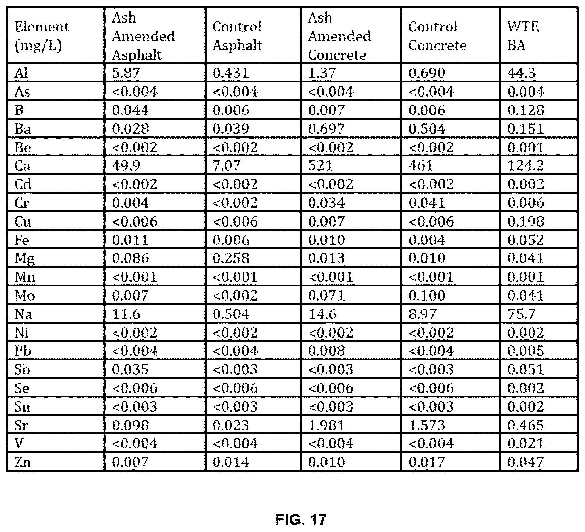 FIG. 7 represents the total environmentally available concentration of trace elements in embodiments of ash amended and control pavements.