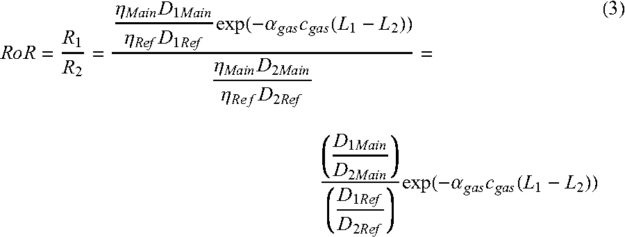 According to another aspect of the present disclosure, gas absorption measurement device is derived from formation of RoR as described from the novel differential path length (DPL) ratio.