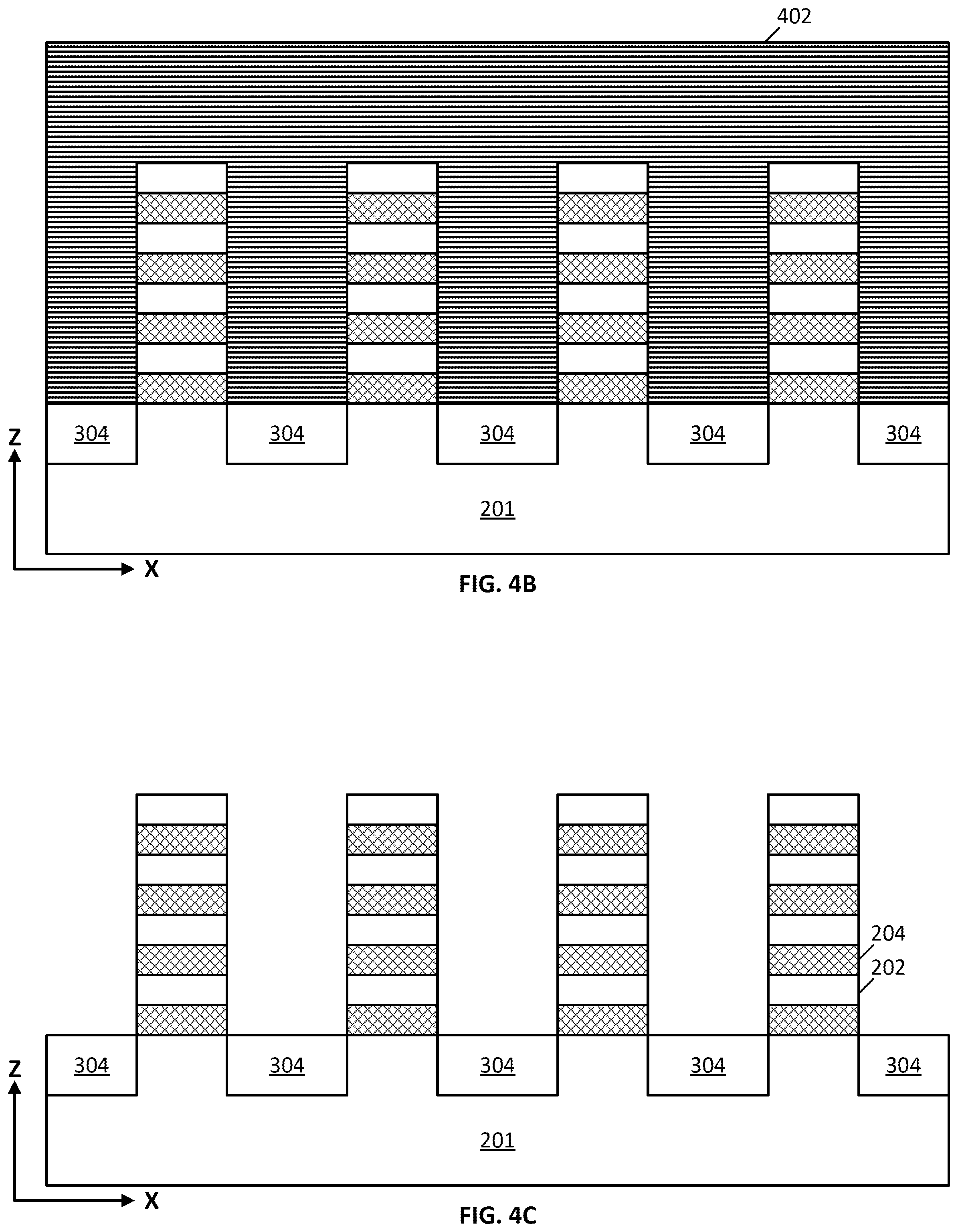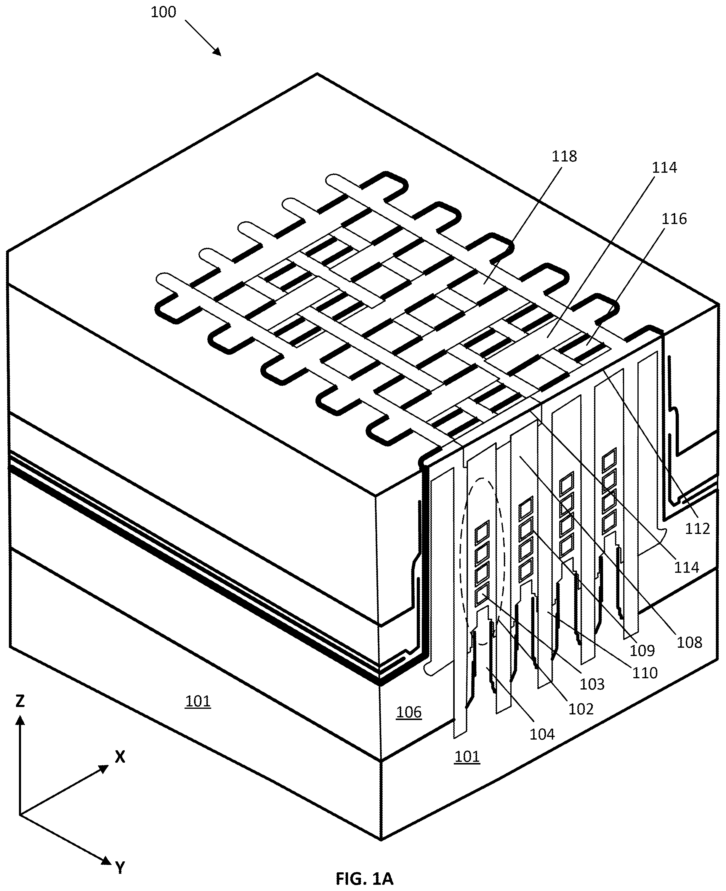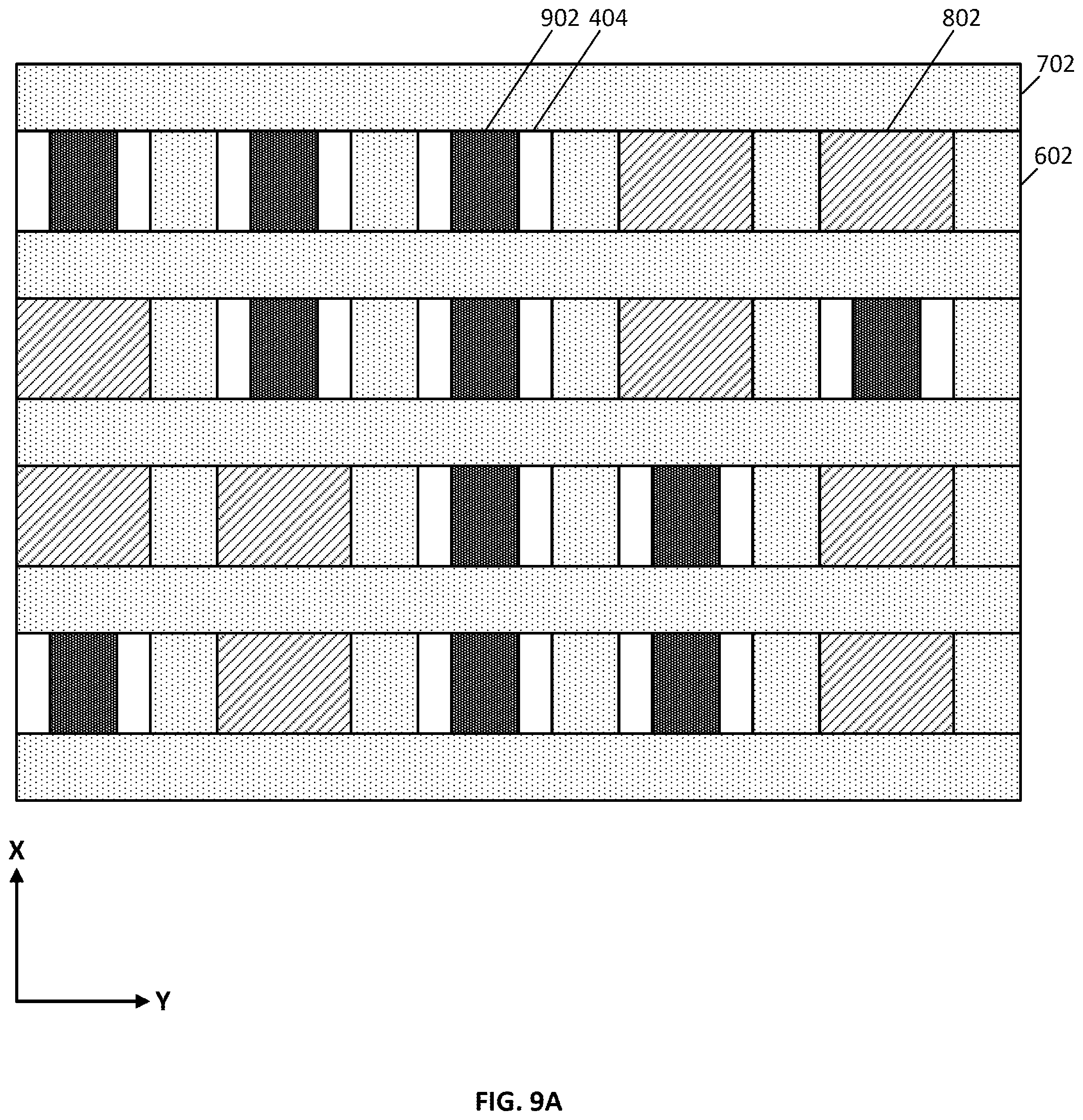 forming a plurality of fins comprising semiconductor material extending above a top surface of a dielectric layer, the plurality of fins each extending lengthwise in a first direction; forming source or drain regions at opposite ends of the semiconductor material of each of the plurality of fins in the first direction; forming a dielectric fill between adjacent source or drain regions; forming strips of gate layers over the semiconductor material of the plurality of fins, the strips of gate layers extending lengthwise in a second direction different from the first direction; etching trenches at least through the strips of gate layers and through the dielectric fill, the trenches extending lengthwise in the second direction; and filling the trenches with a dielectric material. 9. The method of 10. The method of 11. The method of forming a dielectric cap layer over the strips of gate layers; forming one or more conductive contacts over corresponding one or more source or drain regions; forming one or more plugs over corresponding one or more other source or drain regions; assembling a first polymer material on the dielectric cap layer; and assembling a second polymer material on the one or more conductive contacts and the one or more plugs. 12. The method of 13. The method of replacing the first polymer material with a dielectric masking material; lithographically patterning the dielectric masking material to from openings above the dielectric cap layer; removing the exposed dielectric cap layer within the openings; and forming conductive bridges within the openings. 14. An integrated circuit comprising: