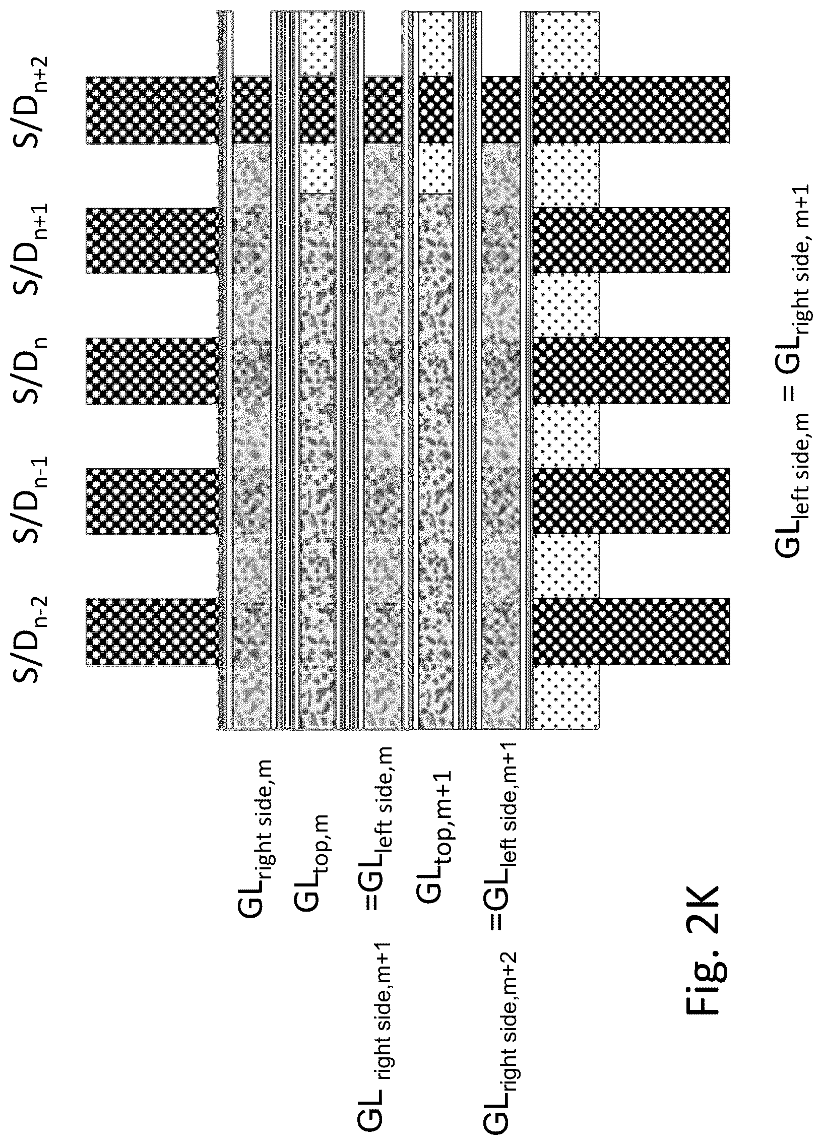 [0019]FIGS. 2A-2K are example illustrations of processing and forming 2D HD-NOR array structures;