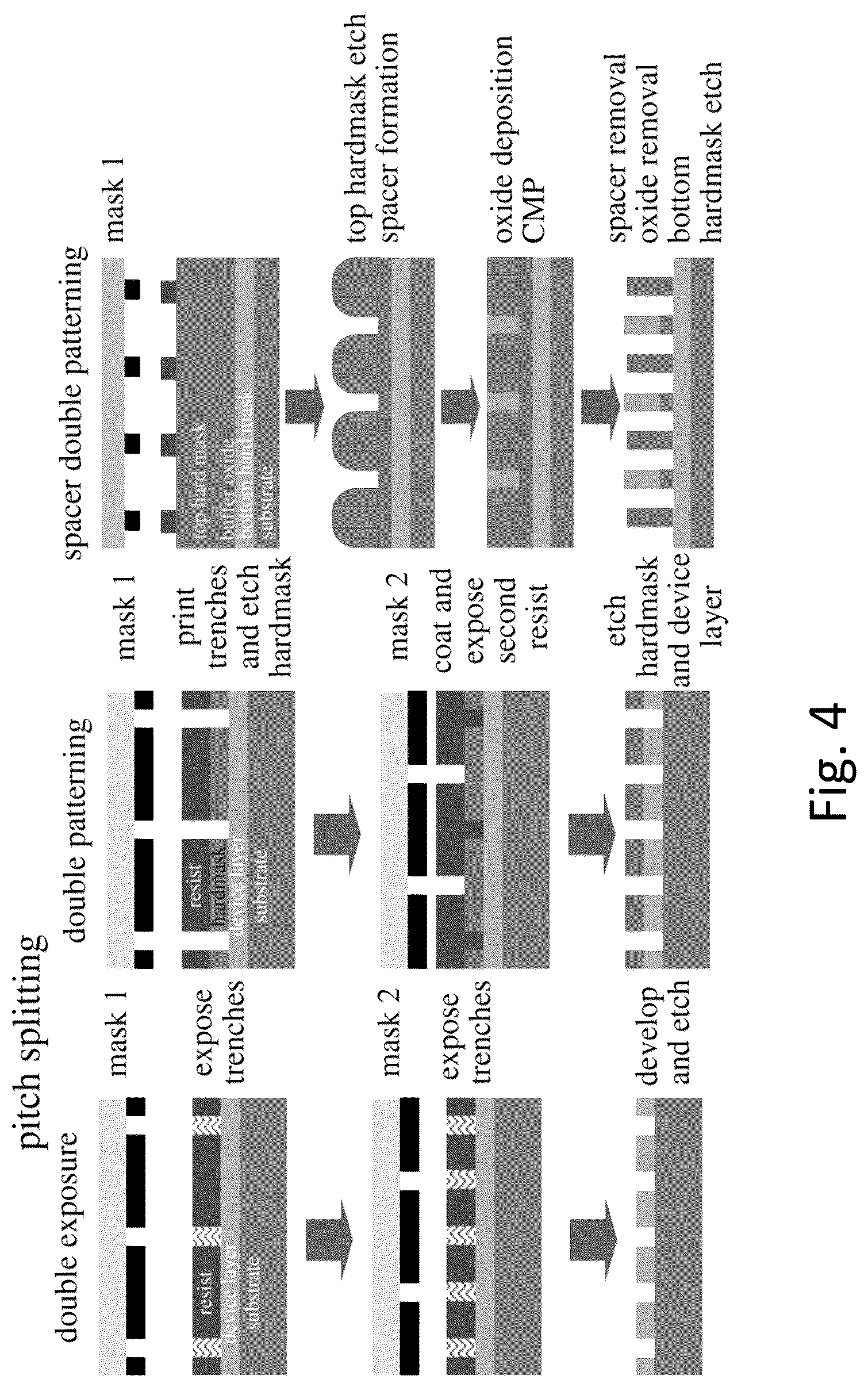 [0021]FIG. 4 illustrates known in the art alternatives for low cost grid patterning;