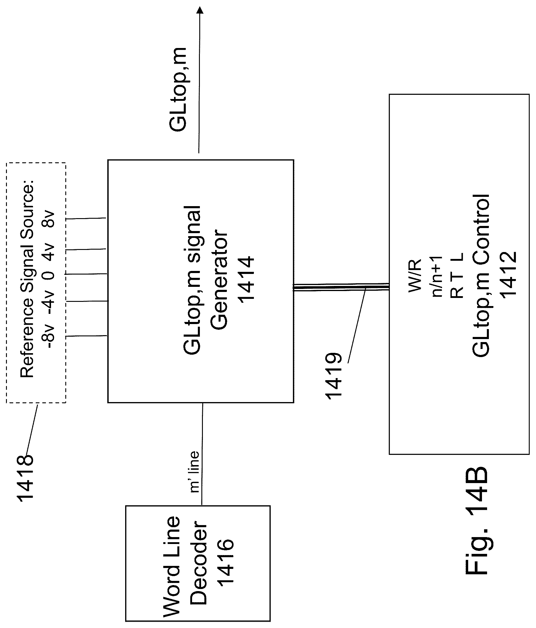 [0031]FIGS. 14A-14C are example illustrations of building blocks for the HD-NOR peripheral circuits;