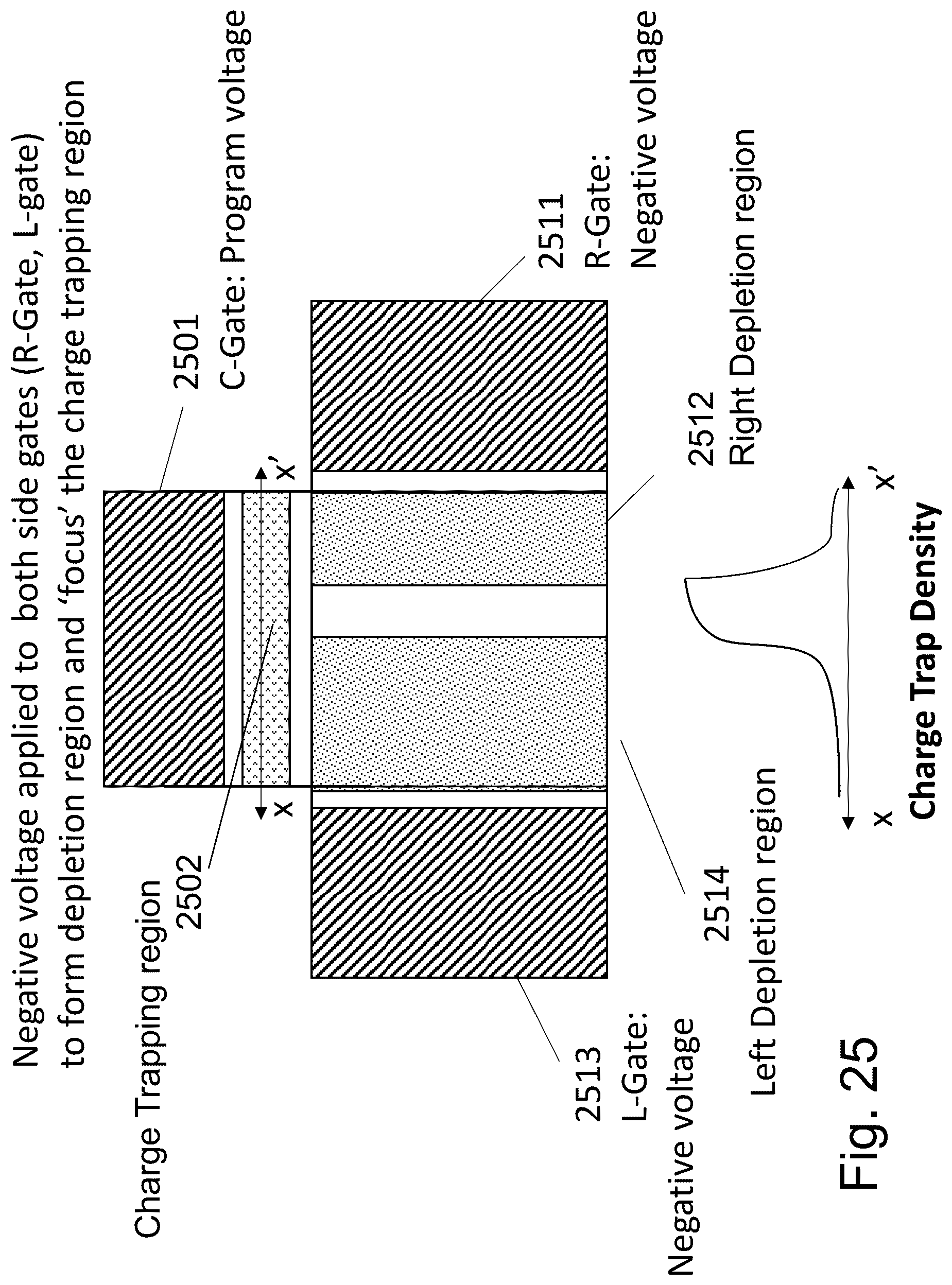 [0043]FIG. 25 is an example illustration of focusing the trapping region to a zone of charge trapping region;