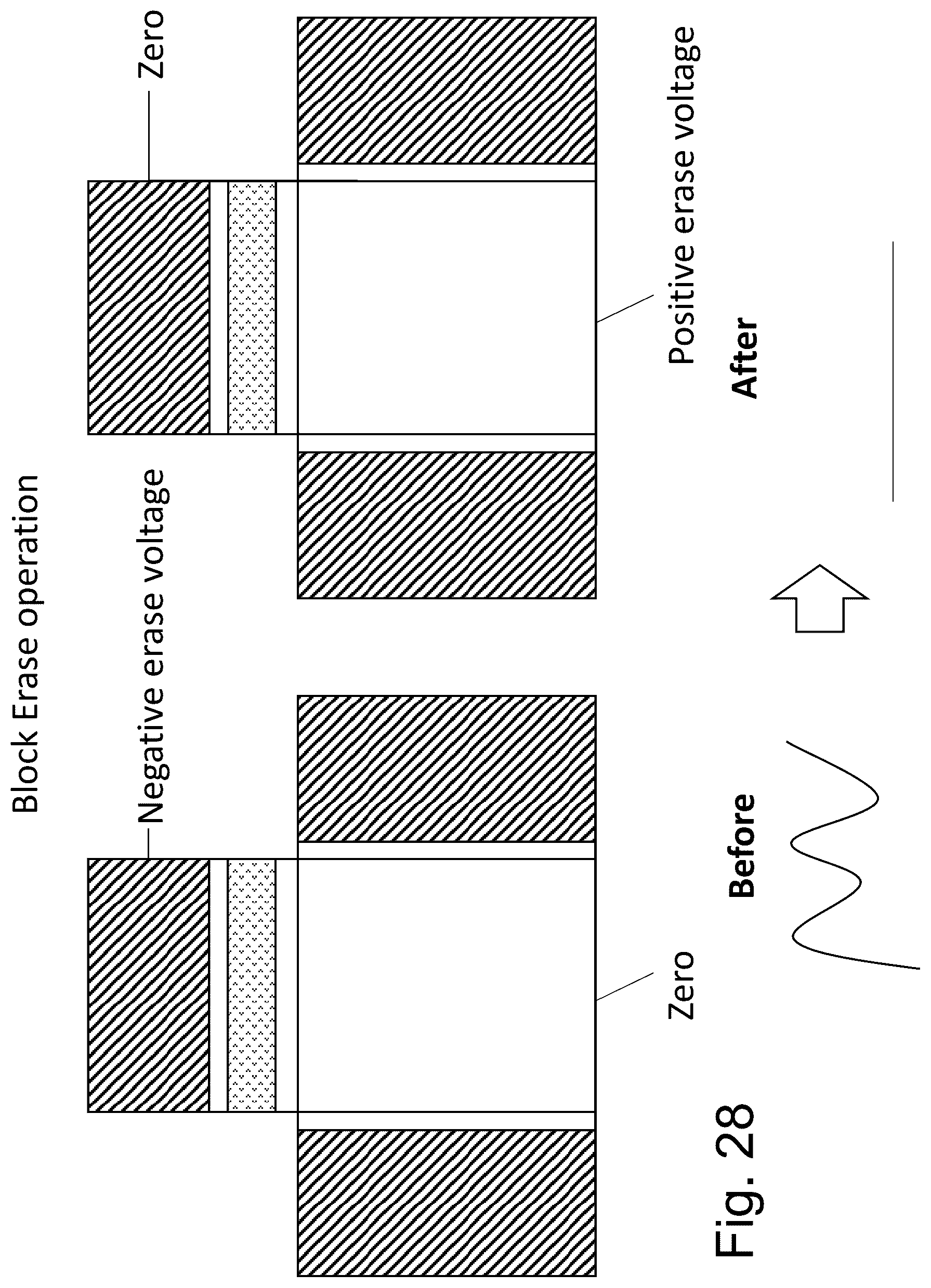 [0046]FIG. 28 is an example illustration of a block erase operation on a zone of charge trapping region;