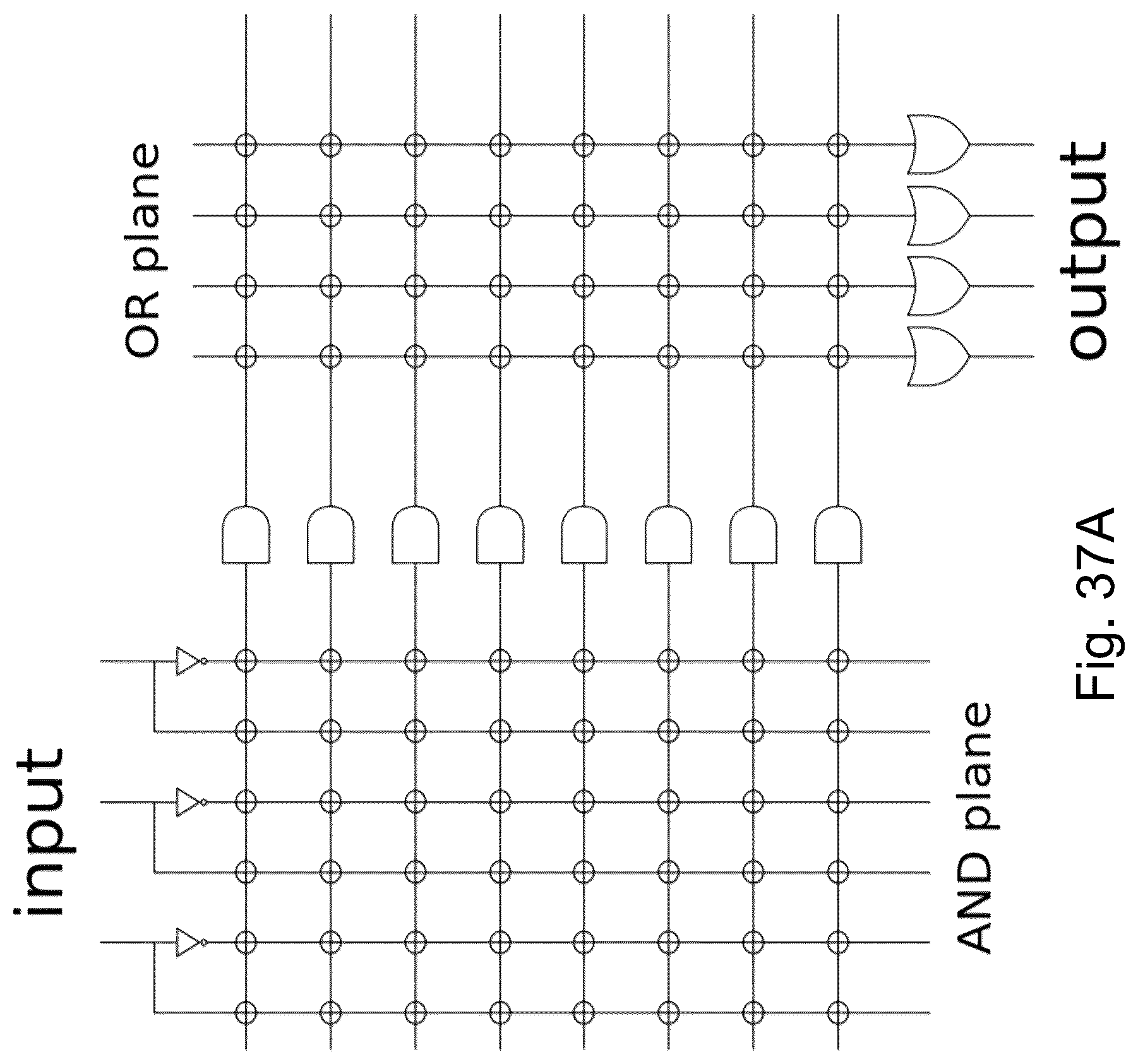 [0055]FIG. 37A is an example illustration of prior art Programmable logic array PLA structure;