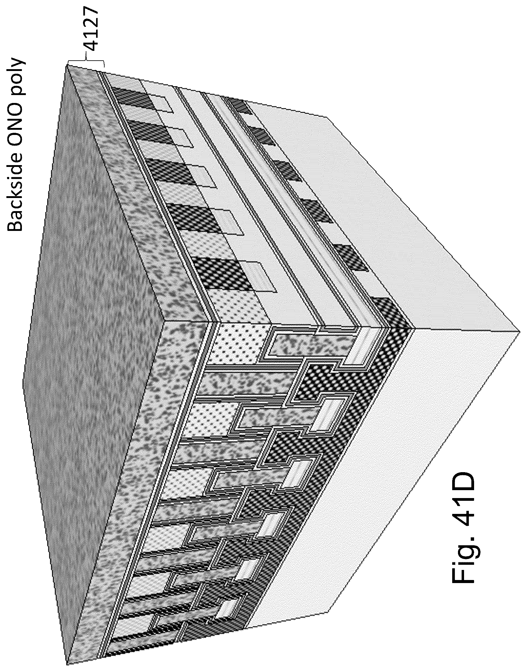 [0255]FIG. 41D illustrates covering the top of the structure of FIG. 41C with O/N/O layers and gate material 4127.