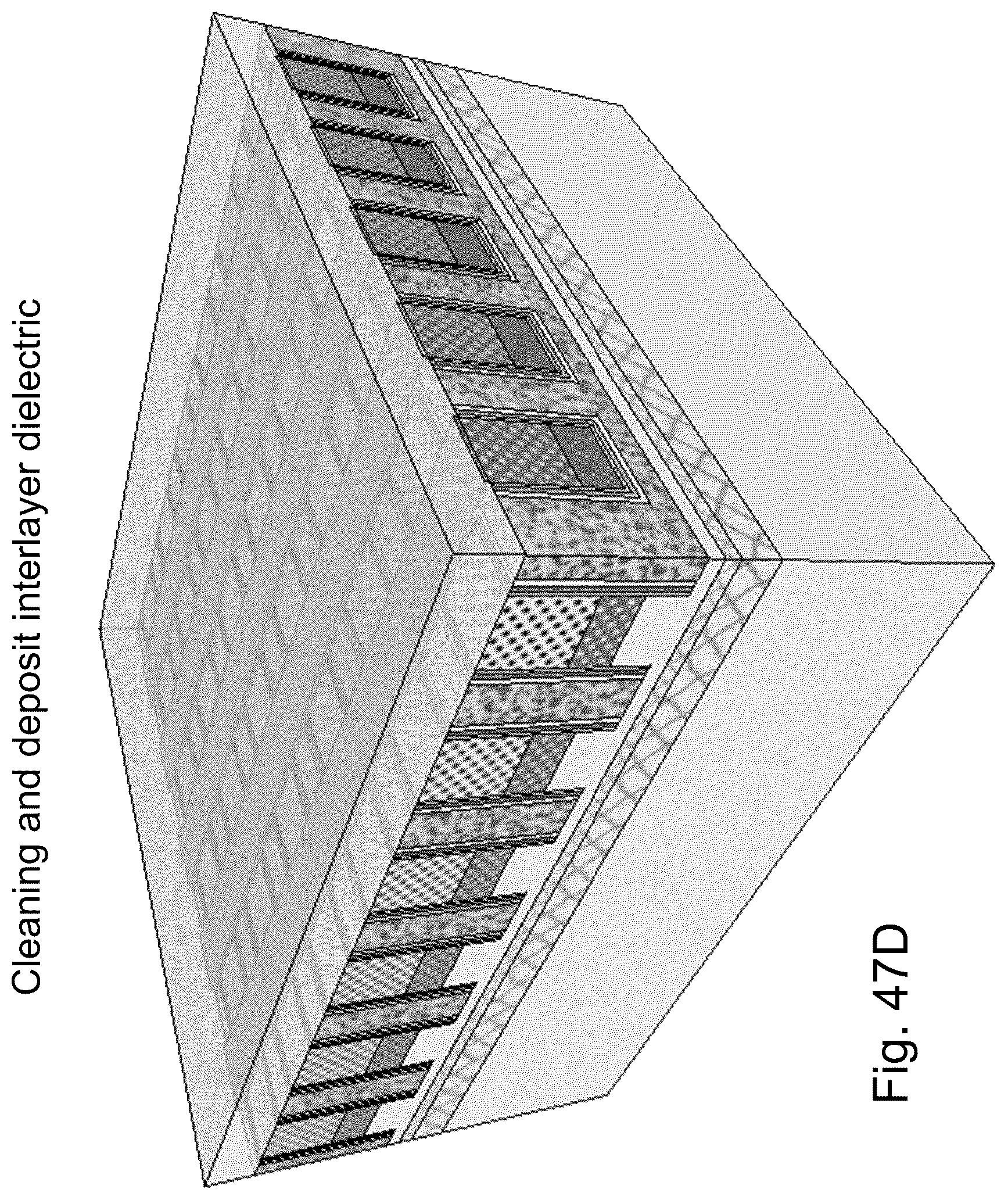 [0277]The bonding of the programmable ILV on top of the lower stratum could use well-known in the art hybrid bonding techniques which combines oxide to oxide bonding together with metal to metal bonding so the bonding process would also form the connection between the ILV and the strips 4802, 4804.