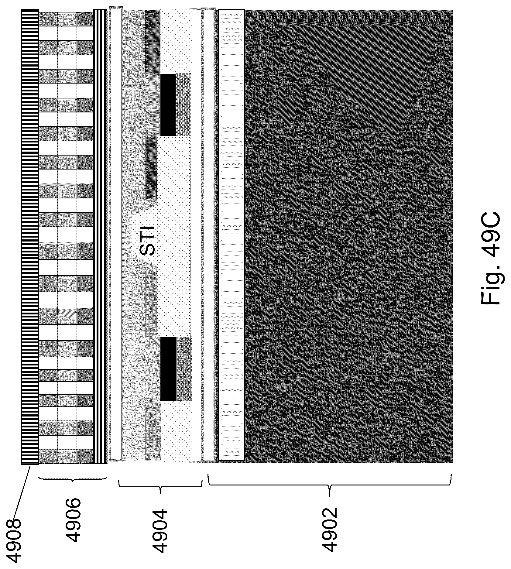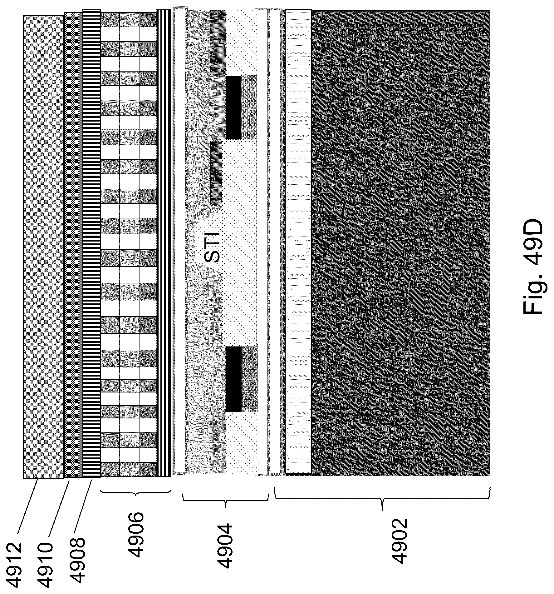 [0280]FIG. 49A illustrates a carrier wafer 4902 on which a first transistor stratum 4904 had been transferred.