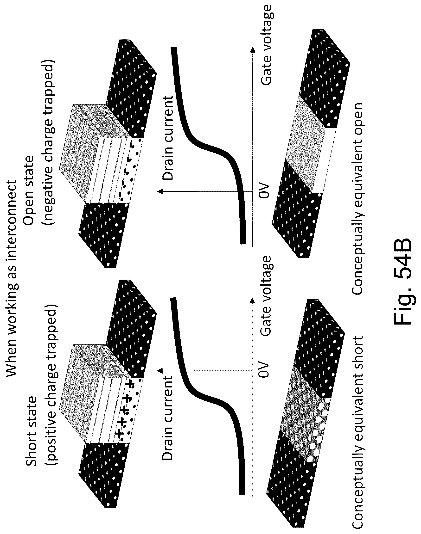 [0308]Each of these transistors could be set to one of three modes: Always ‘off’, function as transistor, always ‘on’, as was discussed herein before and conceptually illustrated in FIG. 54A-FIG. 54B.