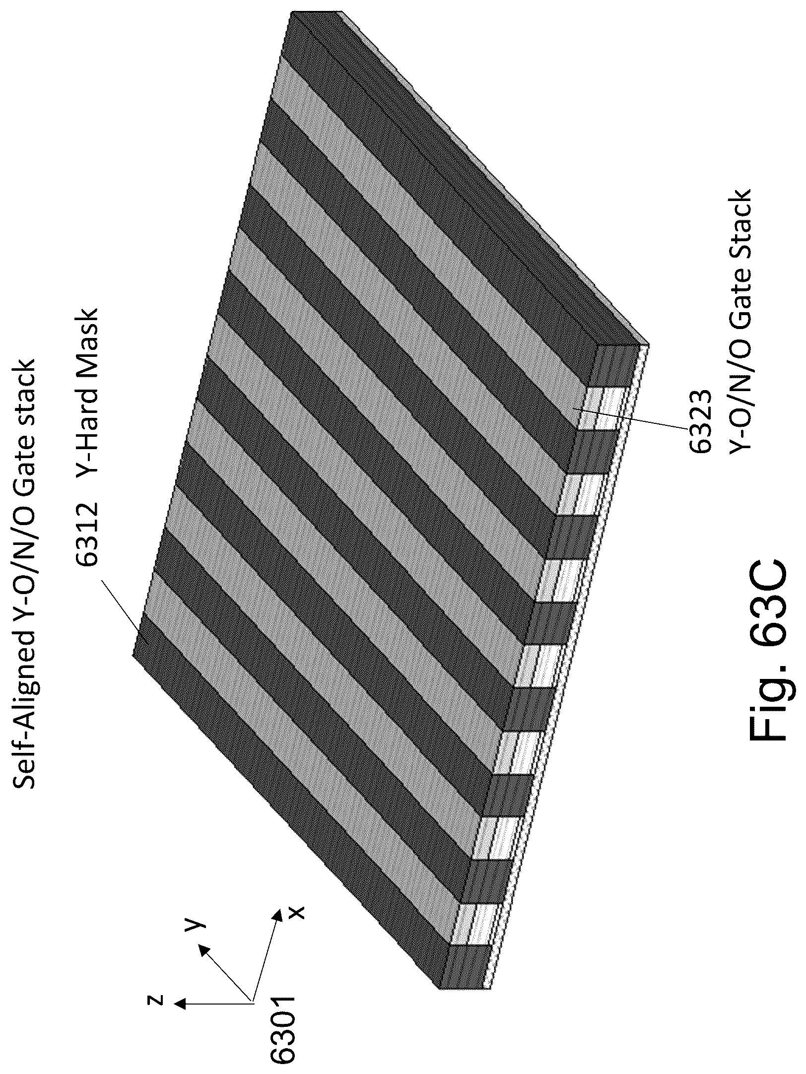 [0339]FIG. 63E illustrates the structure after forming the X direction O/N/O 6344 and its corresponding X gates 6343. The process could include ALD and other blanket depositions followed by lithography based patterning.