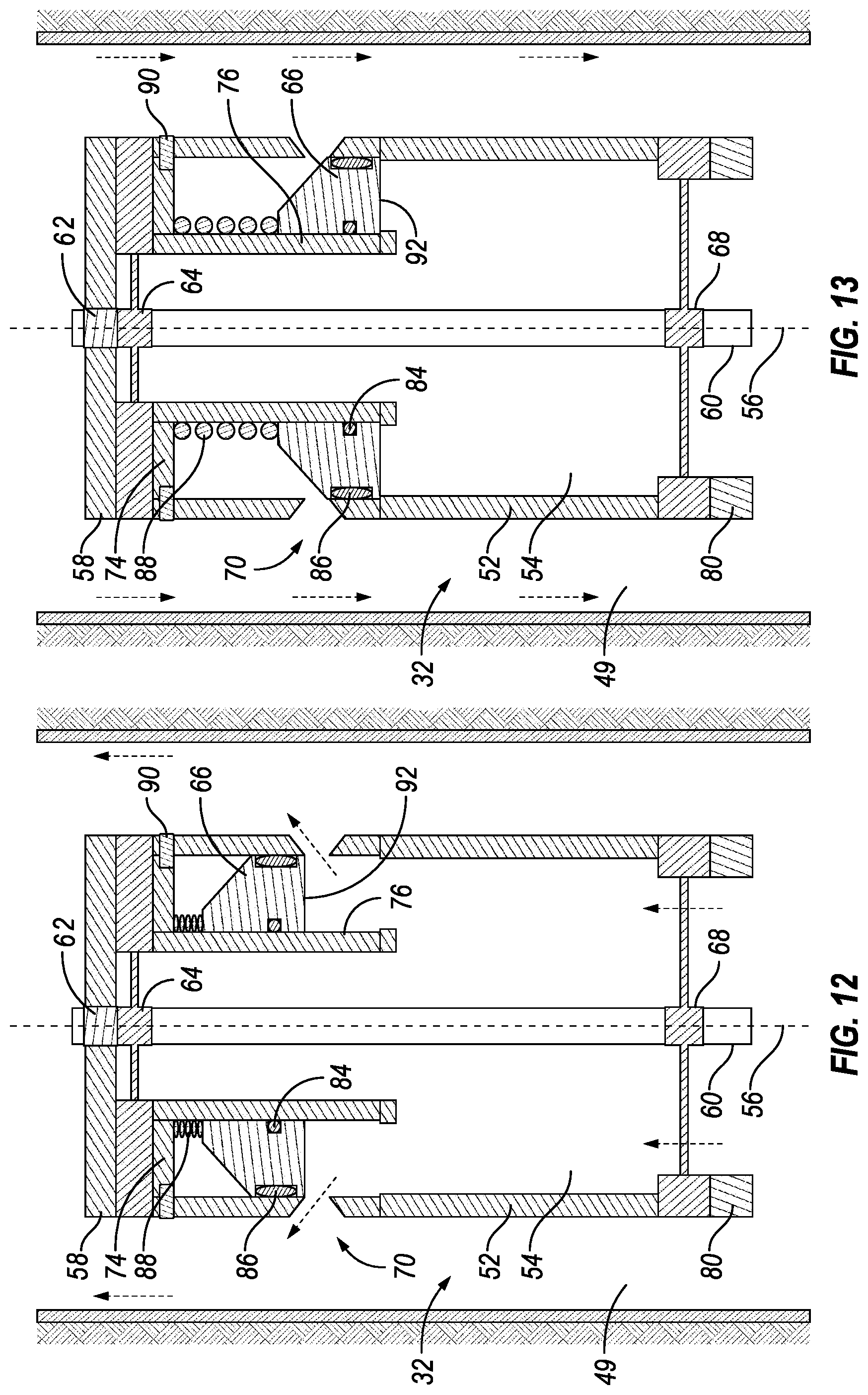 a tubular discharge body with an inner discharge bore having a central axis; a body port that extends through a sidewall of the discharge body; and a sliding seal member located within the discharge bore, the sliding seal member moveable between a port open position where the body port is open to allow fluids to travel through the body port between the discharge bore and an outside of the electric submersible pump system, and a port closed position where fluids are prevented from traveling through the body port between the discharge bore and the outside of the electric submersible pump system; where the sliding seal member is ring shaped in cross section; the sliding seal member is biased to the port closed position when the pump is off; and the sliding seal member is moveable to the port open position when the pump is on. 2. The system of 3. The system of 4. The system of 5. The system of an inner seal that seals between an outer diameter surface of the tubular lip of the housing head and an inner diameter surface of the sliding seal member; and an outer seal that seals between an outer diameter surface of the sliding seal member and an inner diameter surface of the discharge bore. 6. The system of a downhole bearing supporting the shaft within the discharge bore of the discharge body downhole of the sliding seal member; and an uphole bearing supporting the shaft within the discharge bore of the discharge body uphole of the sliding seal member. 7. The system of an uphole end that has an end cap, the end cap circumscribing the shaft and sealing across the discharge bore; and an uphole rotary seal that seals between the shaft and a central opening of the end cap; where the discharge body has a downhole end that is open. 8. The system of the discharge body includes a plurality of the body ports; the sliding seal member includes a plurality of inner ports; and when the sliding seal member is in the port open position, the body ports are aligned with the inner ports. 9. The system of 10. The system of 11. A method for providing artificial lift to wellbore fluids, the method including: