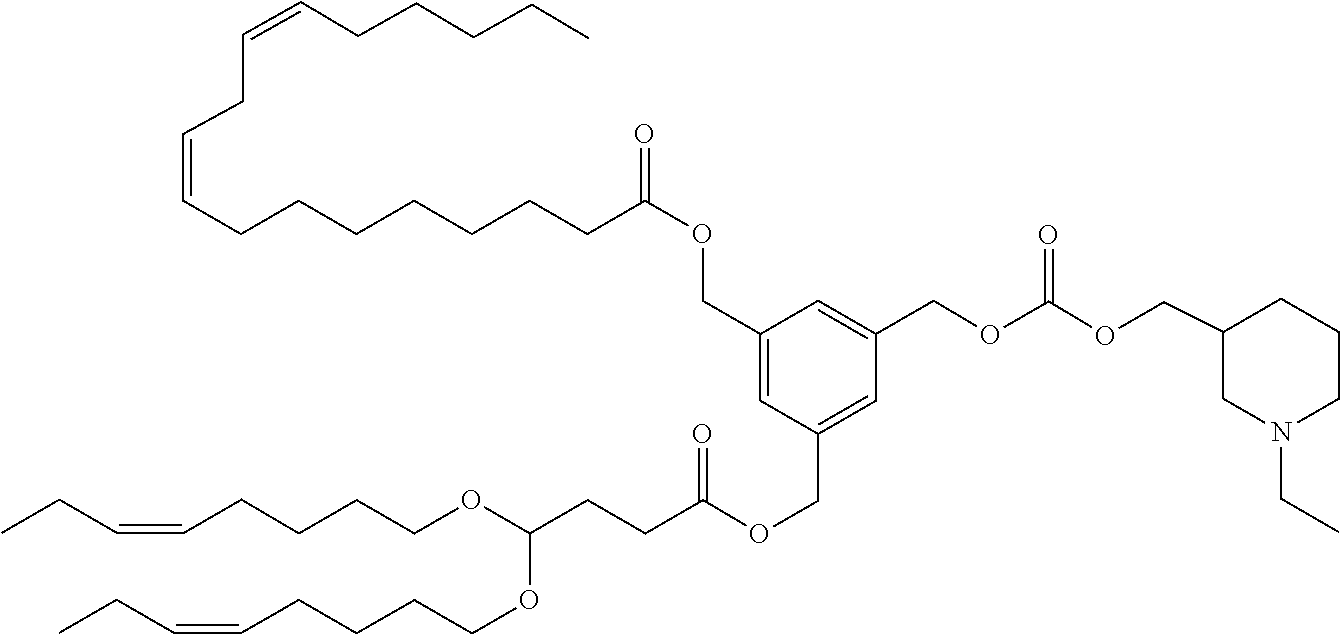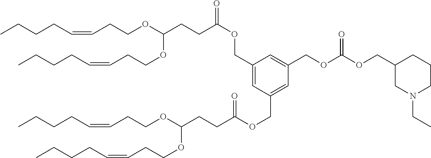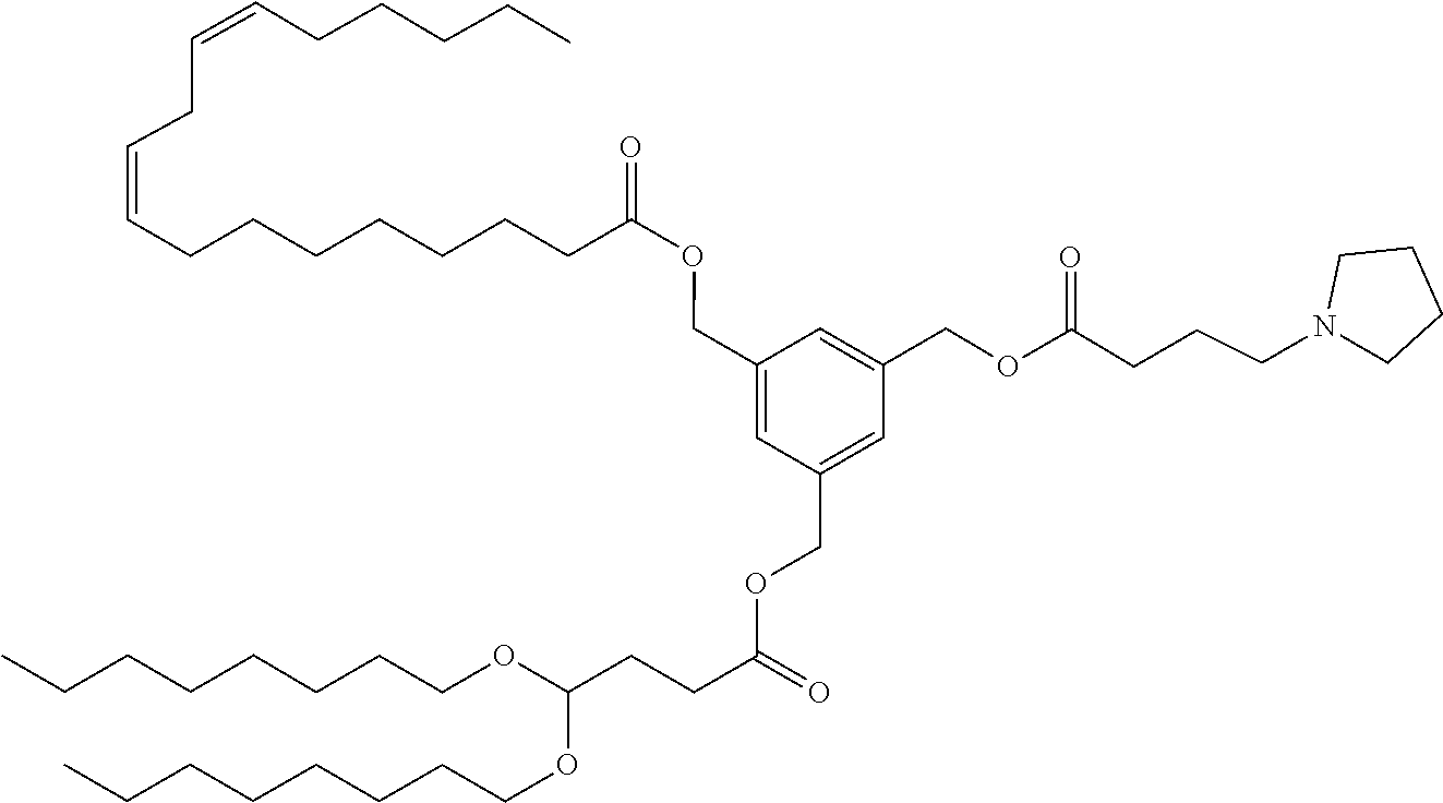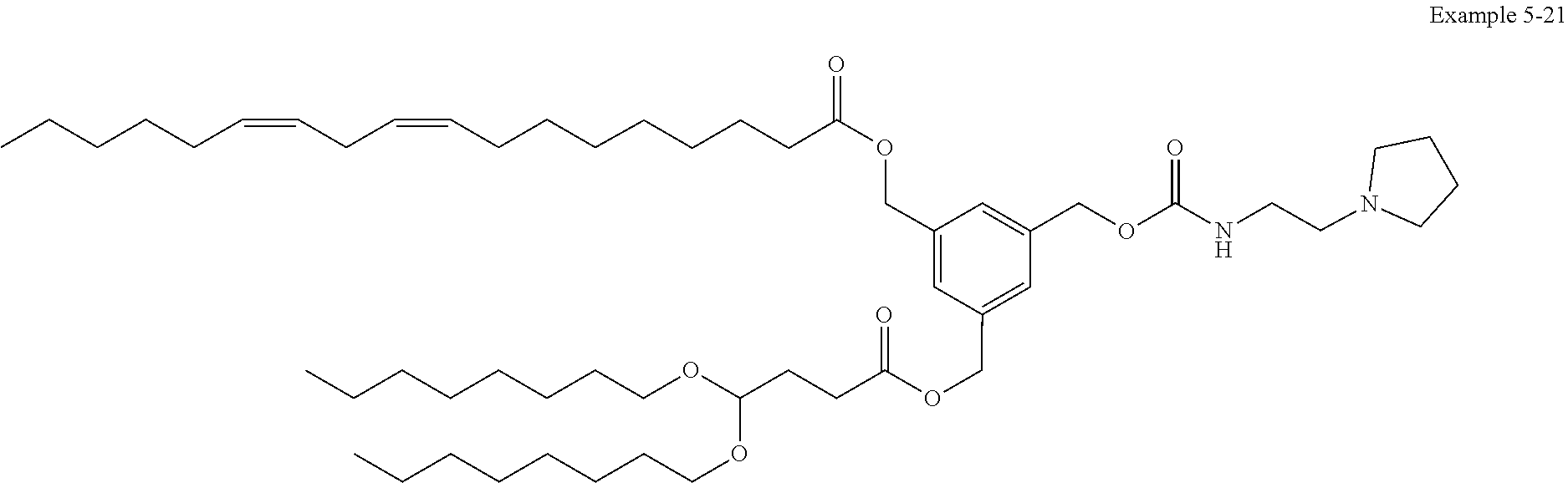 Example 5-5: 3-(((4,4-bis(octyloxy)butanoyl)oxy)methyl)-5-((((3-(diethylamino)propoxy)carbonyl)oxy)methyl)benzyl (9Z,12Z)-octadeca-9,12-dienoate