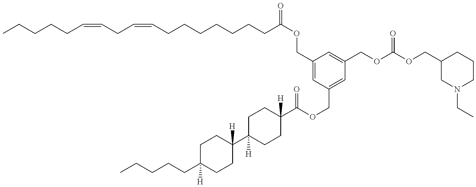 Example 5-13: 3-(((((1-ethylpiperidin-3-yl)methoxy)carbonyl)oxy)methyl)-5-((((9Z,12Z)-octadeca-9,12-dienoyl)oxy)methyl)benzyl (1r,1′s,4R,4′R)-4′-pentyl-[1,1′-bi(cyclohexane)]-4-carboxylate