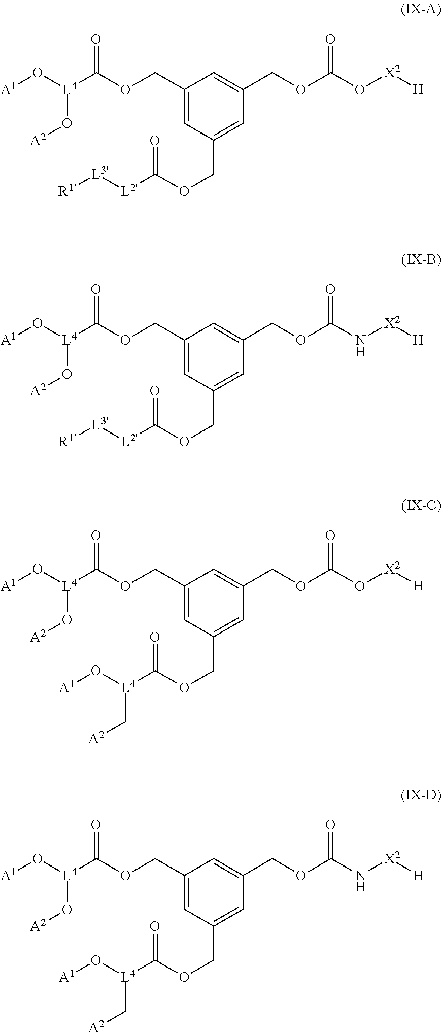 wherein x and # are as described above and herein. In some embodiments, A1and A2are the same. In some embodiments, A1and A2are different. In some embodiments, A1 is an optionally substituted C1-C20aliphatic. In some embodiments, A1is an optionally substituted C1-C15aliphatic. In some embodiments, A1is an optionally substituted C1-C12aliphatic. In some embodiments, A1is an optionally substituted C1-C9aliphatic. In some embodiments, A1is an optionally substituted C1-C6aliphatic. In some embodiments, A1is an optionally substituted C6-C20aliphatic. In some embodiments, A1is an optionally substituted C6-C12aliphatic. In some embodiments, A1is an optionally substituted C12-C20aliphatic. In some embodiments, A1is an optionally substituted C15-C20aliphatic. In some embodiments, A1an optionally substituted C6aliphatic. In some embodiments, A1is an optionally substituted C7aliphatic. In some embodiments, A1an optionally substituted C8aliphatic. In some embodiments, A1an optionally substituted C9aliphatic. In some embodiments, A1is an optionally substituted C10aliphatic. In some embodiments, A1is an optionally substituted C11aliphatic. In some embodiments, A1is an optionally substituted C12aliphatic. In some embodiments, A1is an optionally substituted C13aliphatic. In some embodiments, A1is an optionally substituted C14aliphatic. In some embodiments, A1is an optionally substituted C15aliphatic. In some embodiments, A1an optionally substituted C16aliphatic. In some embodiments, A1is a C1-C20aliphatic. In some embodiments, A1is a C1-C15aliphatic. In some embodiments, A1is a C1-C12aliphatic. In some embodiments, A1is a C1-C9aliphatic. In some embodiments, A1is a C1-C6aliphatic. In some embodiments, A1is a C6-C20aliphatic. In some embodiments, A1is a C6-C12aliphatic. In some embodiments, A1is a C12-C20aliphatic. In some embodiments, A1is a C15-C20aliphatic. In some embodiments, A1is a C6aliphatic. In some embodiments, A1is a C7aliphatic. In some embodiments, A1is a C8aliphatic. In some embodiments, A1is a C9aliphatic. In some embodiments, A1is a C10aliphatic. In some embodiments, A1is a C11aliphatic. In some embodiments, A1is a C12aliphatic. In some embodiments, A1is a C13aliphatic. In some embodiments, A1is a C14aliphatic. In some embodiments, A1is a C15aliphatic. In some embodiments, A1is a C16aliphatic. In some embodiments, A1is a C1-C20aliphatic, optionally substituted with 1-6 halogen atoms. In some embodiments, A1is a C1-C15aliphatic, optionally substituted with 1-6 halogen atoms. In some embodiments, A1is a C1-C12aliphatic, optionally substituted with 1-6 halogen atoms. In some embodiments, A1is a C1-C9aliphatic, optionally substituted with 1-6 halogen atoms. In some embodiments, A1is a C1-C6aliphatic, optionally substituted with 1-6 halogen atoms. In some embodiments, A1is a C6-C20aliphatic, optionally substituted with 1-6 halogen atoms. In some embodiments, A1is a C6-C12aliphatic, optionally substituted with 1-6 halogen atoms. In some embodiments, A1is a C12-C20aliphatic, optionally substituted with 1-6 halogen atoms. In some embodiments, A1is a C15-C20aliphatic, optionally substituted with 1-6 halogen atoms. In some embodiments, A1is a C6aliphatic, optionally substituted with 1-6 halogen atoms. In some embodiments, A1is a C7aliphatic, optionally substituted with 1-6 halogen atoms. In some embodiments, A1is a C8aliphatic, optionally substituted with 1-6 halogen atoms. In some embodiments, A1is a C9aliphatic, optionally substituted with 1-6 halogen atoms. In some embodiments, A1is a C10aliphatic, optionally substituted with 1-6 halogen atoms. In some embodiments, A1is a C11aliphatic, optionally substituted with 1-6 halogen atoms. In some embodiments, A1is a C12aliphatic, optionally substituted with 1-6 halogen atoms. In some embodiments, A1is a C13aliphatic, optionally substituted with 1-6 halogen atoms. In some embodiments, A1is a C14aliphatic, optionally substituted with 1-6 halogen atoms. In some embodiments, A1is a C15aliphatic, optionally substituted with 1-6 halogen atoms. In some embodiments, A1is a C16aliphatic, optionally substituted with 1-6 halogen atoms. In some embodiments, A1is a C1-C20aliphatic, optionally substituted with 1-6 fluorine atoms. In some embodiments, A1is a C1-C15aliphatic, optionally substituted with 1-6 fluorine atoms. In some embodiments, A1is a C1-C12aliphatic, optionally substituted with 1-6 fluorine atoms. In some embodiments, A1is a C1-C9aliphatic, optionally substituted with 1-6 fluorine atoms. In some embodiments, A1is a C1-C6aliphatic, optionally substituted with 1-6 fluorine atoms. In some embodiments, A1is a C6-C20aliphatic, optionally substituted with 1-6 fluorine atoms. In some embodiments, A1is a C6-C12aliphatic, optionally substituted with 1-6 fluorine atoms. In some embodiments, A1is a C12-C20aliphatic, optionally substituted with 1-6 fluorine atoms. In some embodiments, A1is a C15-C20aliphatic, optionally substituted with 1-6 fluorine atoms. In some embodiments, A1is a C6aliphatic, optionally substituted with 1-6 fluorine atoms. In some embodiments, A1is a C7aliphatic, optionally substituted with 1-6 fluorine atoms. In some embodiments, A1is a C8aliphatic, optionally substituted with 1-6 fluorine atoms. In some embodiments, A1is a C9aliphatic, optionally substituted with 1-6 fluorine atoms. In some embodiments, A1is a C10aliphatic, optionally substituted with 1-6 fluorine atoms. In some embodiments, A1is a C11aliphatic, optionally substituted with 1-6 fluorine atoms. In some embodiments, A1is a C12aliphatic, optionally substituted with 1-6 fluorine atoms. In some embodiments, A1is a C13aliphatic, optionally substituted with 1-6 fluorine atoms. In some embodiments, A1is a C14aliphatic, optionally substituted with 1-6 fluorine atoms. In some embodiments, A1is a C15aliphatic, optionally substituted with 1-6 fluorine atoms. In some embodiments, A1is a C16aliphatic, optionally substituted with 1-6 fluorine atoms. In some embodiments, A1is a C1-C20aliphat
