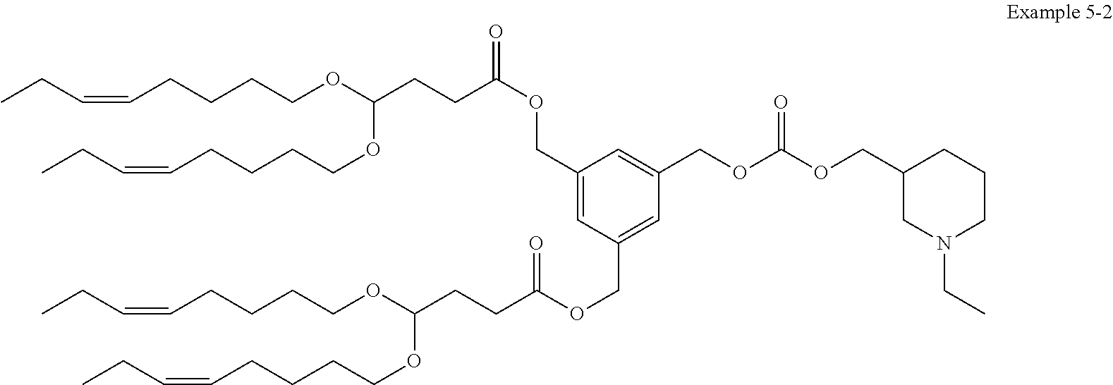 Example 5-2: (5-(((((1-ethylpiperidin-3-yl)methoxy)carbonyl)oxy)methyl)-1,3-phenylene)bis(methylene) bis(4,4-bis(((Z)-oct-5-en-1-yl)oxy)butanoate)