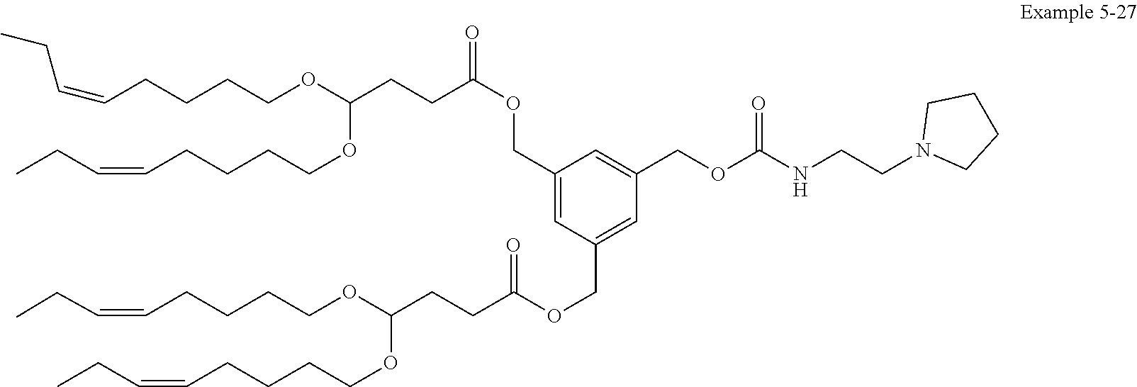Example 5-29: (5-((((2-(pyrrolidin-1-yl)ethyl)carbamoyl)oxy)methyl)-1,3-phenylene)bis(methylene) bis(4,4-bis(((Z)-oct-3-en-1-yl)oxy)butanoate)