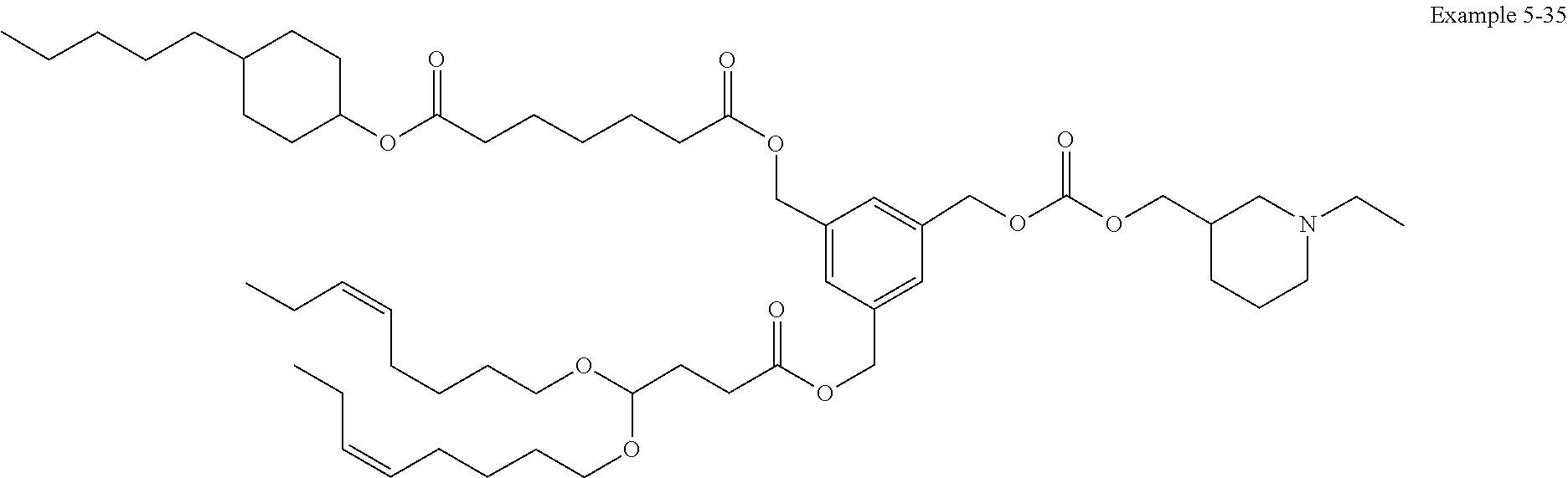 Example 5-35: I-(3-(((4,4-bis(((Z)-oct-5-en-1-yl)oxy)butanoyl)oxy)methyl)-5-(((((1-ethylpiperidin-3-yl)methoxy)carbonyl)oxy)methyl)benzyl) 7-(4-pentylcyclohexyl) heptanedioate